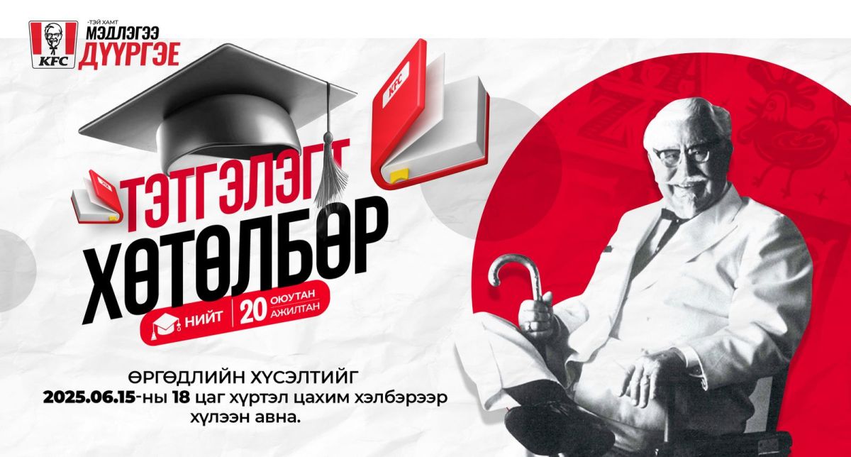 KFC брэнд нь “Чанартай боловсролыг дэмжих” тогтвортой хөгжлийн зорилгын хүрээнд сурч, хөгжих хүсэлтэй, цаашид KFC монгол брэндийн залгамж халаа болж ажиллах чин эрмэлзэлтэй оюутан залуучуудад боломж олгох зорилгоор “ОЮУТНЫ ТЭТГЭЛЭГТ ХӨТӨЛБӨР 2025-2026” зарлаж, их дээд сургууль, коллежоос шалгаруулна.