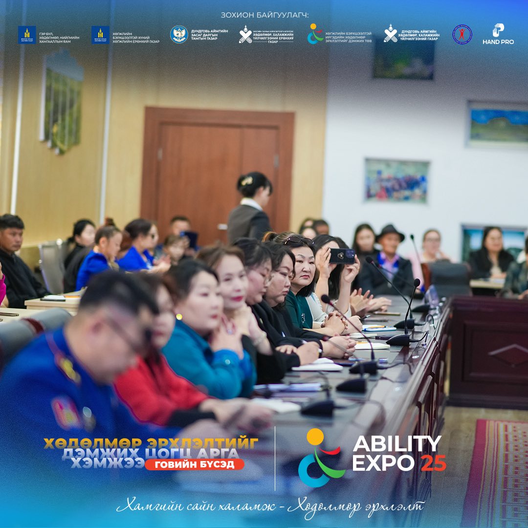 Хөгжлийн бэрхшээлтэй иргэдийн хөдөлмөр эрхлэлтийг дэмжих жил зорилтын хүрээнд зохион байгуулагдаж буй Говийн бүсийн аймгуудын цогц арга хэмжээ /2025.05.15/ Дундговь аймагт боллоо. Цогц арга хэмжээний хүрээнд орон нутгийн ажил олгогчдод сургалт зохион байгууллаа. Монгол Улсад байгаа 111 мянган хөгжлийн бэрхшээлтэй иргэний 16.6 хувь нь хөдөлмөр эрхэлдэг. Орон нутагт буй хөгжлийн бэрхшээлтэй иргэдийг зөвхөн үйлчилгээний байгууллагад ажиллана. Өөр ажил хийх боломжгүй гэсэн нийтлэг, буруу ойлголтоос үүдэж эрхийг нь зөрчдөг түгээмэл тохиолдол байна. Иймд Хөдөлмөрийн тухай хууль болон, Хөгжлийн бэрхшээлтэй хүний эрхийг хангах хуулийн заалт, хэрэгжилтийг орон нутгийн төр, хувийн хэвшлийн байгууллагад мэдээлэл хүргэж, чадавхжуулах нь нэн чухал байгаа юм. Ахмад настан, хөгжлийн бэрхшээлтэй иргэн, хүүхдийн асрамжийн үйлчилгээ, тэдгээрийн эрхийг хангах, хамгаалах, хөгжлийн бэрхшээлтэй иргэдэд зориулсан тохируулгат орчин бүрдүүлэх, хүүхдийн тоглоомын талбай, зуслан, цэцэрлэгт хүрээлэн барьж байгуулвал аж ахуйн нэгж, байгууллагыг 1 хүртэлх хувиар татварын хөнгөлөлт эдлүүлэх заалтыг тусгасан. Сургалтаар хөгжлийн бэрхшээлтэй хүний хөдөлмөр эрхлэлтийн байдалд хийсэн хяналт шалгалт, ажлын байранд хүртээмжтэй орчин бүрдүүлэх, мэдээлийн хүртээмжийг нэмэгдүүлэх, цахим ур чадвар мэдээллийн аюулгүй байдлын талаар мэдээлэл өгсөн байна.