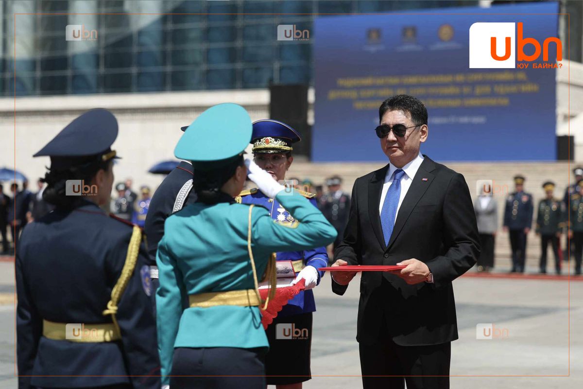 Монгол Улсын Ерөнхийлөгч, Зэвсэгт хүчний Ерөнхий командлагч У.Хүрэлсүх ёслолд оролцож, үндэсний аюулгүй байдлыг хангах нэр хүндтэй бөгөөд хариуцлагатай албанд хүчин зүтгэхээр цэргийн цолоо гардан авсан төгсөгчдөд баяр хүргэж, амжилт хүслээ.
