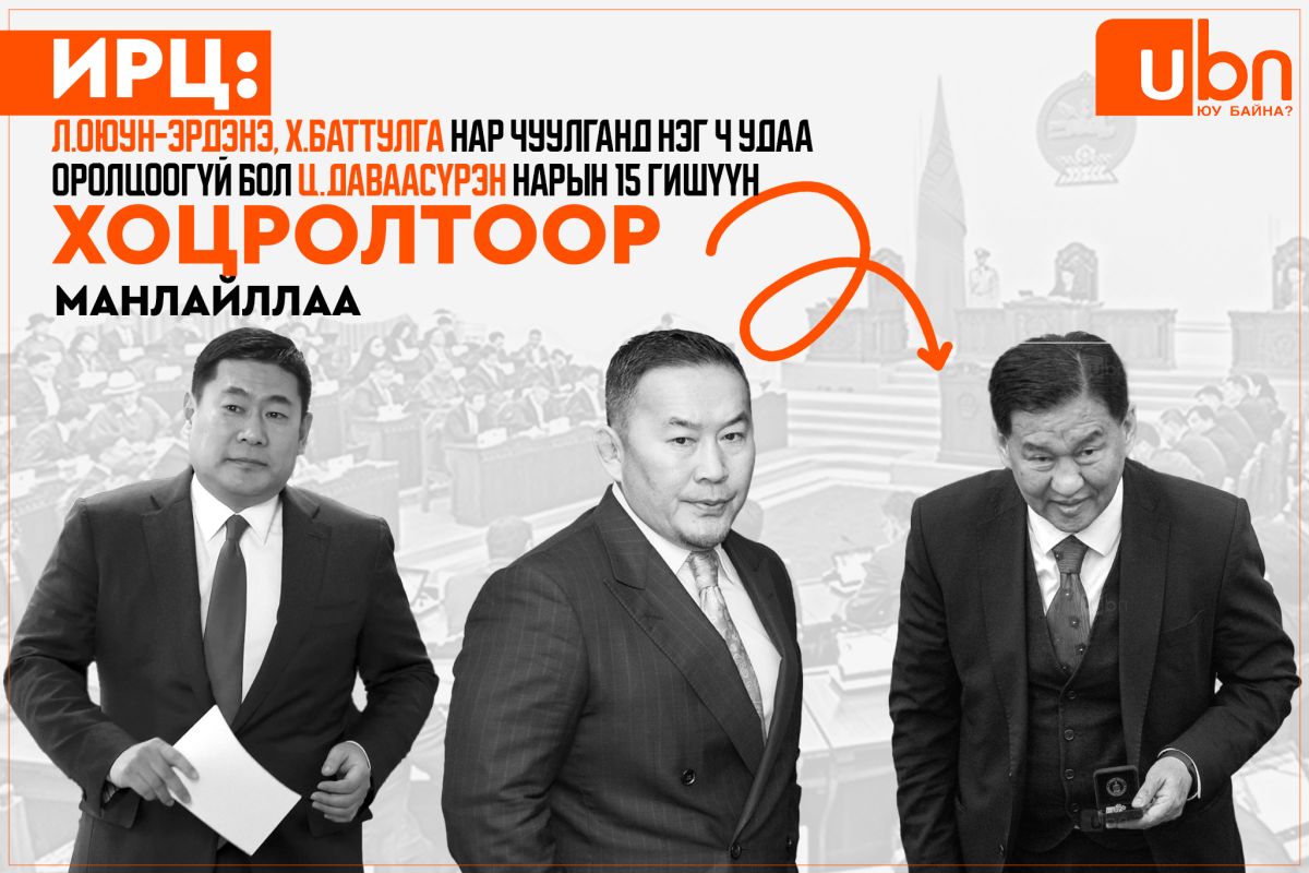 Тэгвэл ТАСЛАЛТЫН тоогоор УИХ-ын гишүүн Лу.Гантөмөр /5/, Ц.Туваан /5/, Р.Эрдэнэбүрэн /4/ нар тэргүүлжээ.