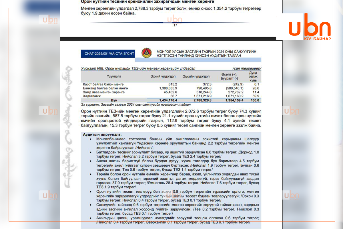 Үндэсний Аудитын газраас 2024 оны төсвийн гүйцэтгэлд хийсэн аудитын дүгнэлтээ танилцуулсан. Бид өмнө нь төсвийн ерөнхийлөн захирагч буюу сайд нарын мөнгөн хөрөнгөөс илэрсэн зөрчлүүдийг танилцуулсан билээ. Тэгвэл энэ удаад орон нутгийн төсвийн ерөнхийлөн захирагчдын мөнгөн хөрөнгөд илэрсэн зөрчлүүдээс онцлон хүргэж байна.