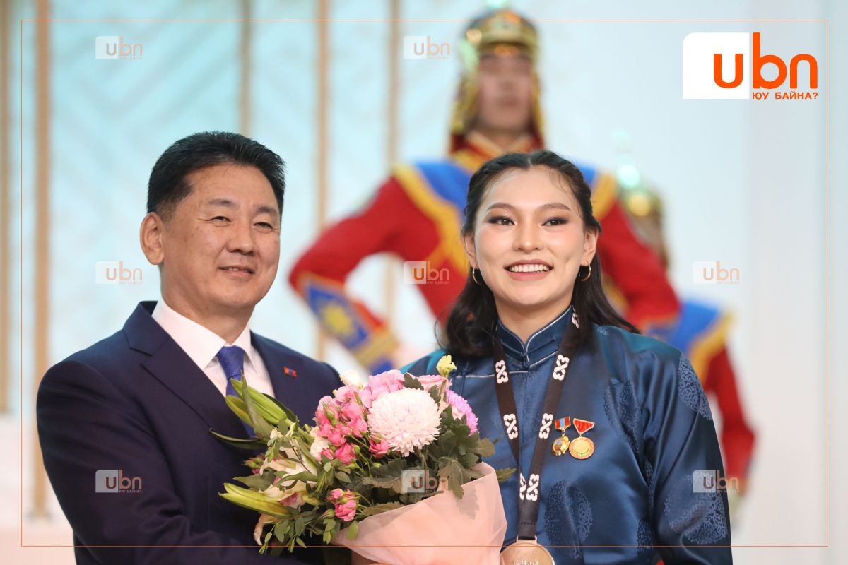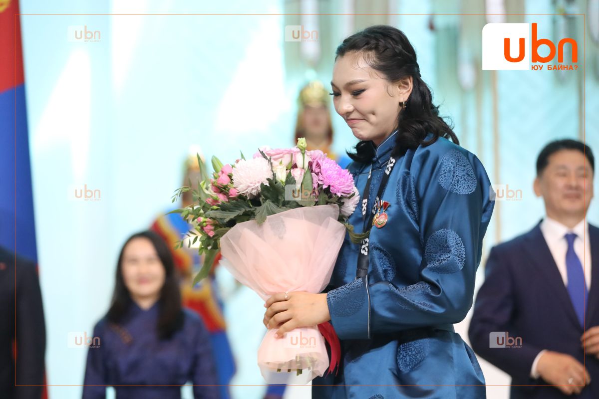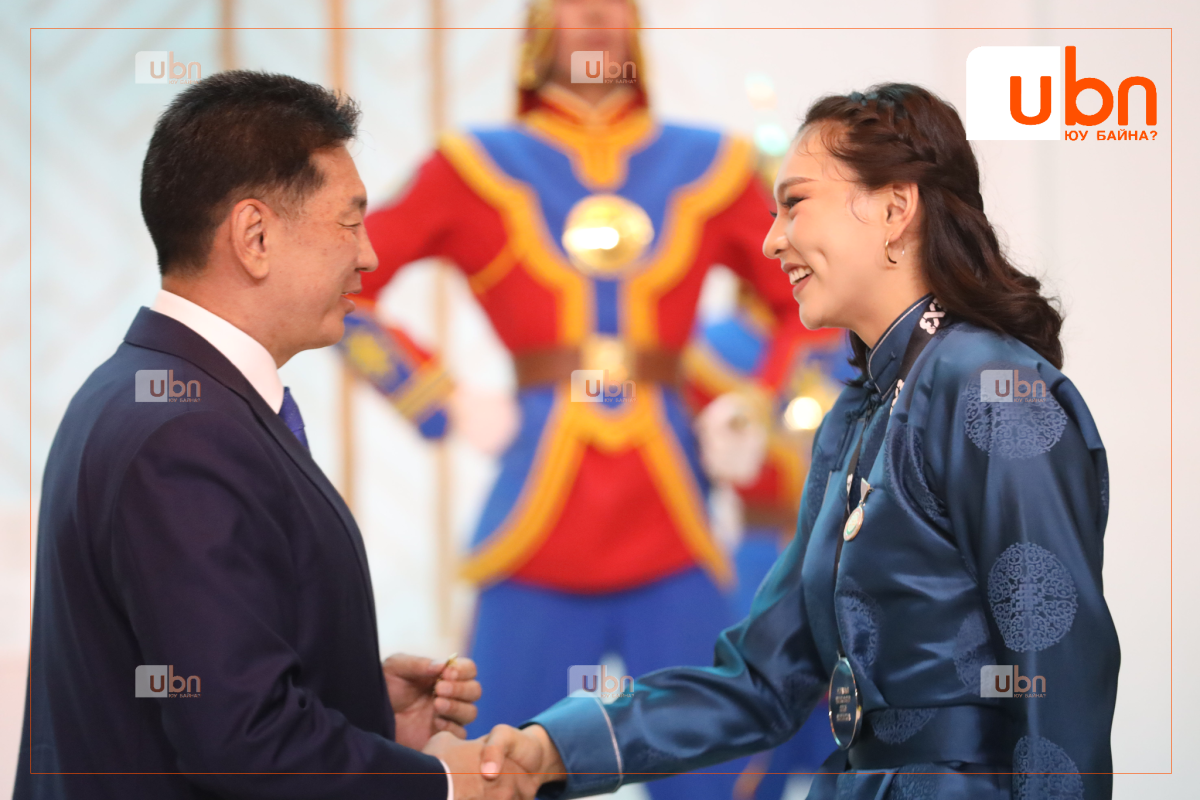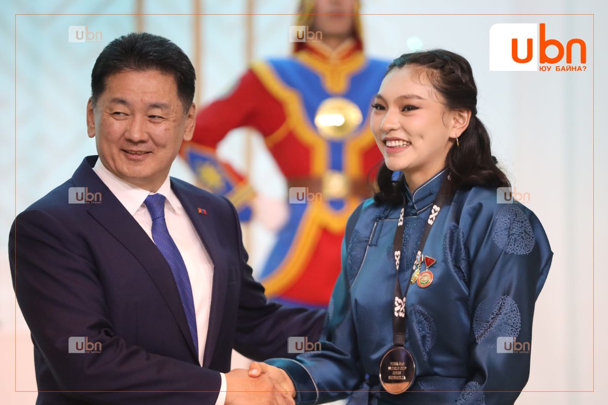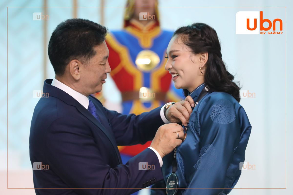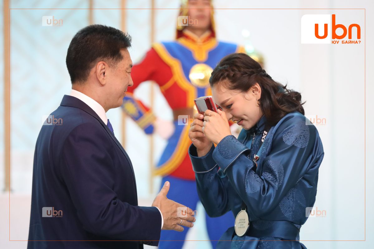 Улаанбаатар хотноо болсон 3х3 сагсан бөмбөгийн ДАШТ-ээс "Мөнгөн" медаль хүртсэн Монголын үндэсний шигшээ багийн эмэгтэй тамирчдад Монгол Улсын Ерөнхийлөгч У.Хүрэлсүх МУГТ цол тэмдэг гардууллаа. ДАШТ-ий ҮНЭ ЦЭНЭТЭЙ ТОГЛОГЧ, Монгол Улсын 3x3 эмэгтэй шигшээ багийн тамирчин О.Хулангийн МУГТ цол хүртэж буй АГШИНГ хүргэж байна.