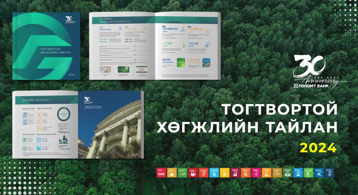 Голомт банк Тогтвортой хөгжлийн стратеги, хариуцлагатай банкны зарчмуудын хүрээнд баримталж буй бодлого болон Байгаль орчин, Нийгэм, Засаглалын хүрээнд хэрэгжүүлж буй сайн туршлагуудаа 2024 оны Тогтвортой хөгжлийн тайландаа тусгалаа.