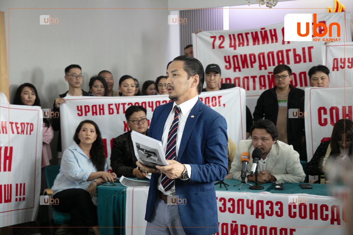 Тэдний зүгээс мөн Дугараа овогтой Алтанхуяг гэж хүн УДБЭТ-ын захирлын түр орлон гүйцэтгэгчээр ирсэн. Энэ хүн ирэхдээ Монгол Улсын бүх хуулийг зөрчиж ирсэн. Ч.Номин сайд энэ хүнийг түр орлон гүйцэтгэгчээр томилсон. Төрийн албаны зөвлөлөөс 10 шалгуур үзүүлэлтийг хангасан хүн УДБЭТ-ын захирлаар ирэх ёстой. Энэ хүн 40%-д ч хүрэхгүй. Өөрт нь багшилж байсан н.Ганцэцэг гэж хүнийг уран сайхны удирдаачаар томилсон. Энэ хүн 3 сая 600 мянган төгрөгийн цалинтай. Мөн Дугараа овогтой Алтанхундага буюу өөрийнхөө төрсөн дүүгийн “Улаанбаатар балет” компани руу байгууллагын хөрөнгөөс худалдан авалт хийсэн. Ашиг сонирхлын тухай хууль, төрийн өмчөөр бараа үйлчилгээ худалдан авах хуулийг зөрчсөн. Ингээд идэш уулт нь эхэлсэн. Мөн ирснээсээ хойш багийн найз, балетын хөгжлийн санд олон жил ажилласан н.Батхүрэл гэж хүнийг Дуурь бүжгийн эрдмийн театрын Ерөнхий менежерээр томилсон. Дуурь бүжгийн эрдмийн театрын одоогийн удирдлагууд уран бүтээлчдээ огт сонсохгүй байна. Хүсэлт тавиад орж байгаа уран бүтээлчдийг “Та нарын хийх юм огт хамаагүй” гээд гаргаж байна. 4 хэвлэл мэдээллийн хэрэгсэлтэй хаалтын гэрээ байгуулж 18 сая төгрөг зарцуулсан гэдэг мэдээлэл бий. Гэтэл театрт хангалттай хэмжээний санхүүгийн асуудал үүсээд байна хэмээсэн юм. Тэдний хийсэн хэвлэлийн хурлыг эсэргүүцэгчид мөн тус театраас ирсэн нь хэвлэлийн хурлыг тараалаа.