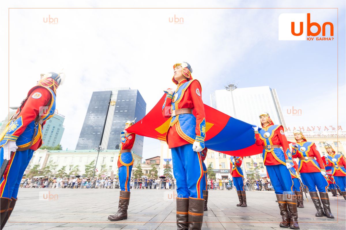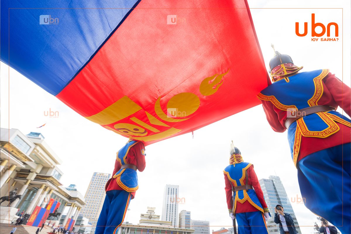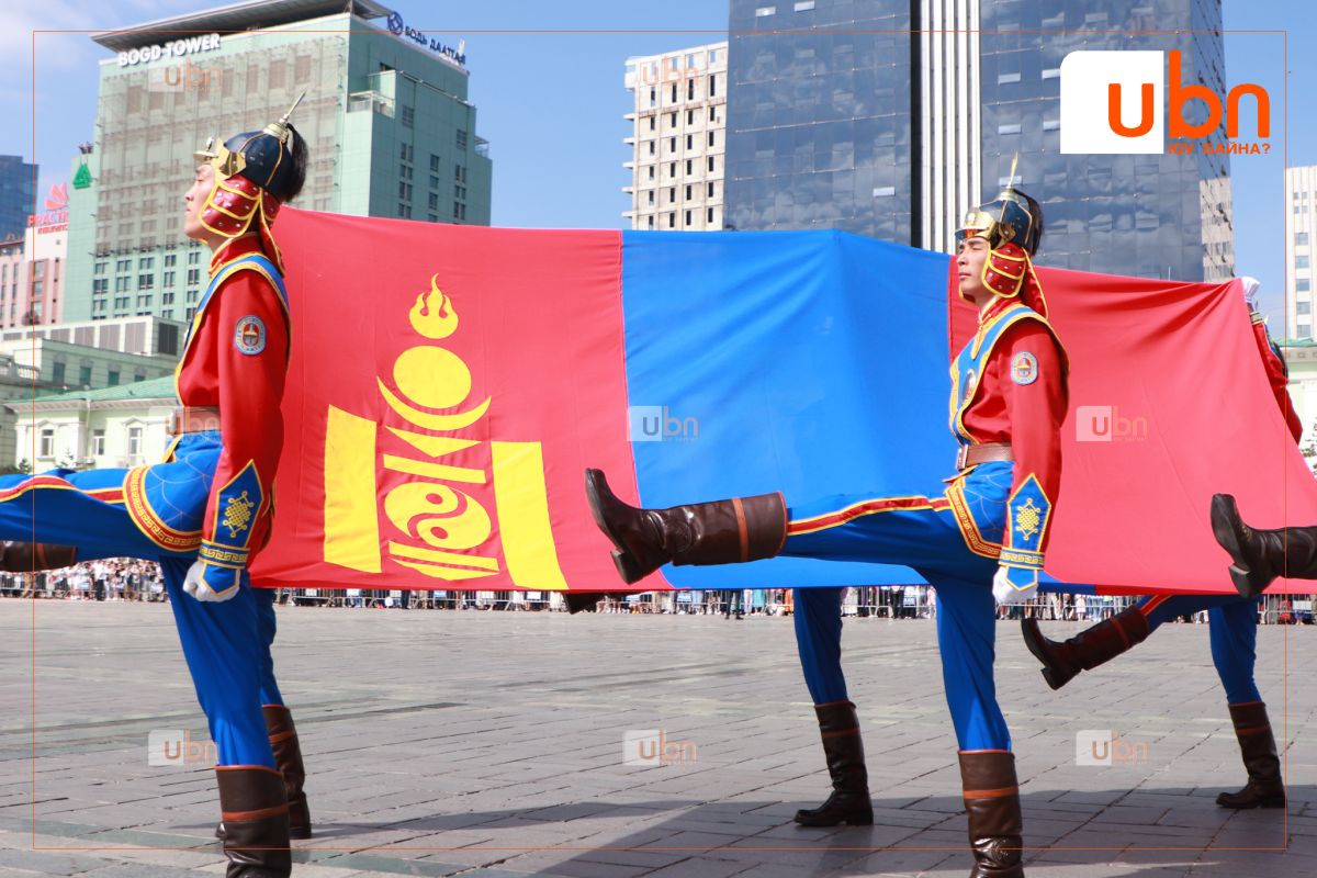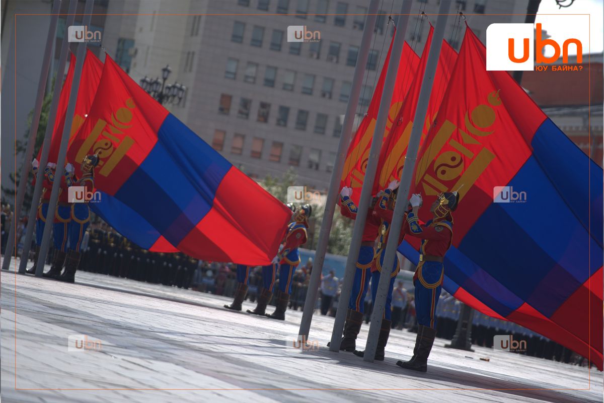 Төрийн далбааг мандуулах үед хөгжимд Төрийн дуулал эгшиглэж, 21 удаа ёслолын буудлага үйлдэн хүндэтгэл үзүүллээ.