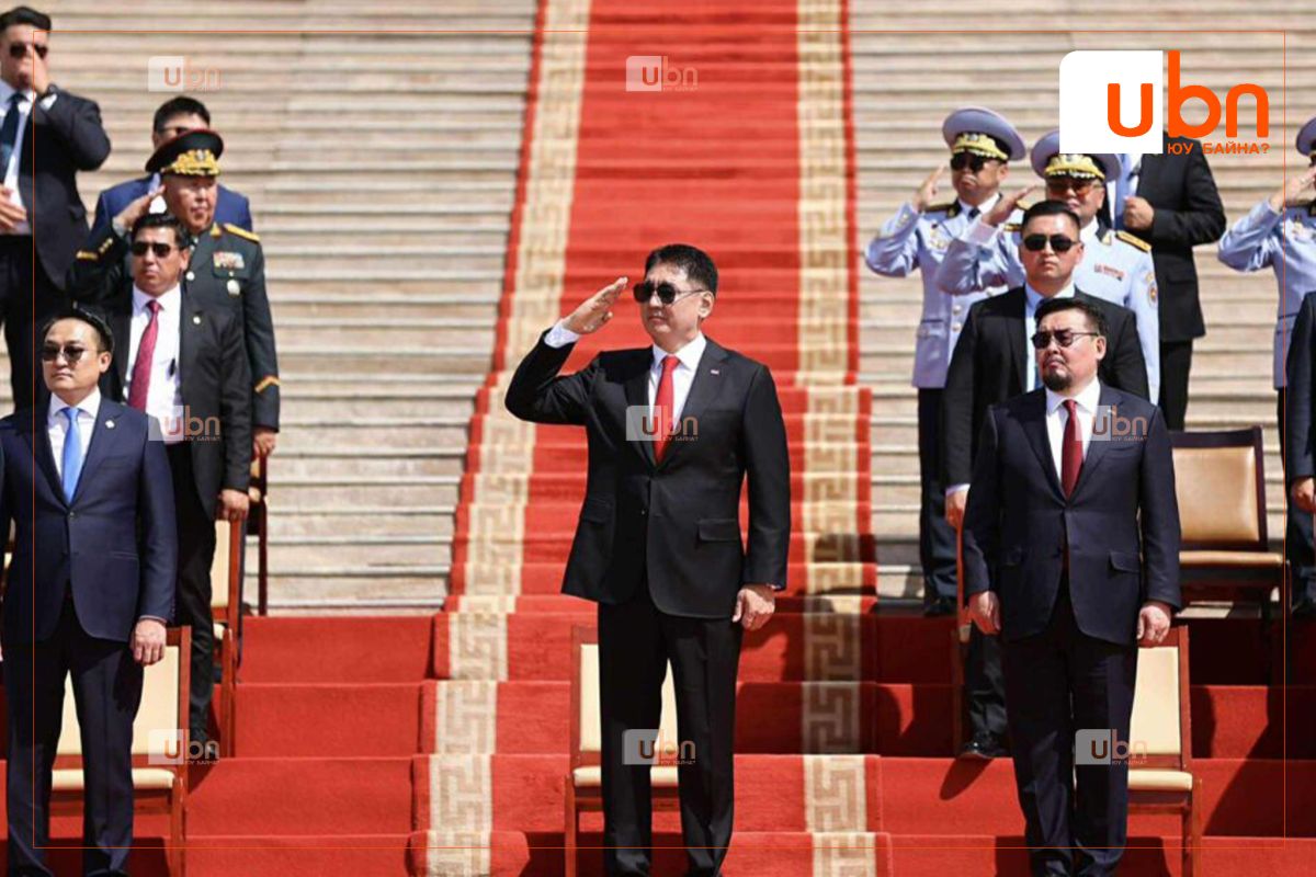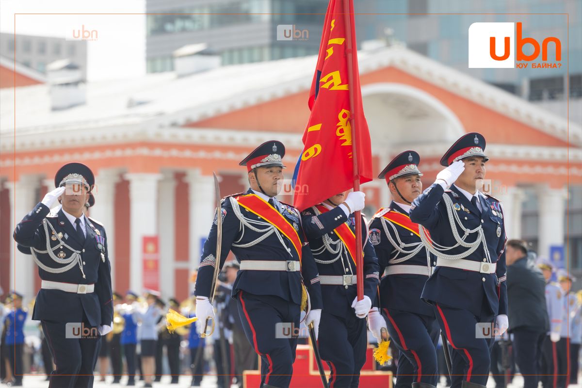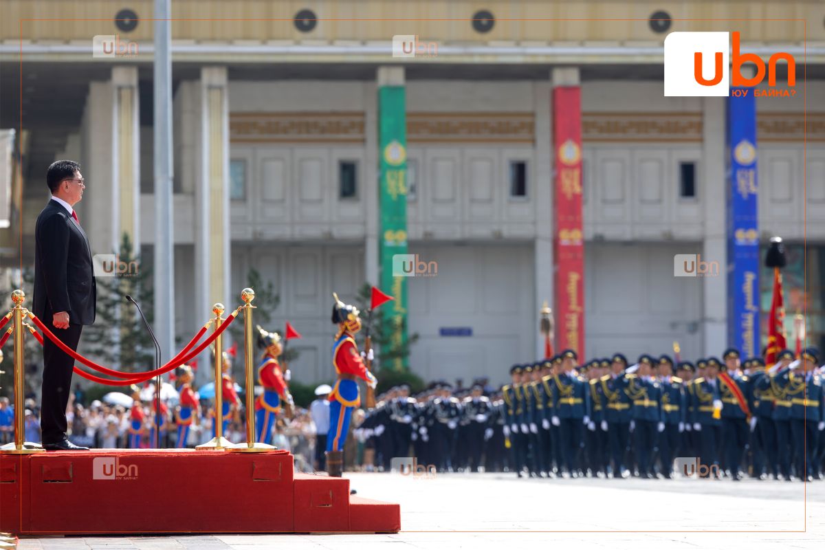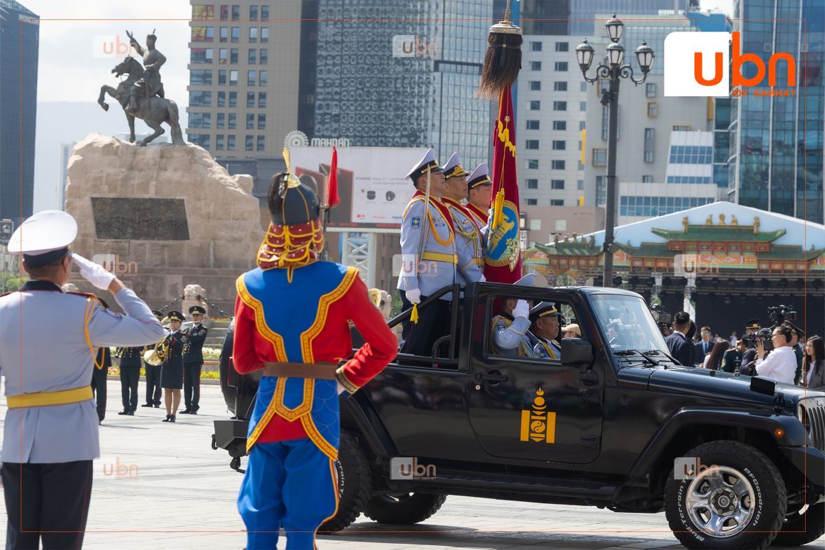 Мөн ёслолын жагсаалд оролцож буй төрийн цэргийн болон хууль сахиулах байгууллагын алба хаагчдад амжилт хүсэж, ард түмэн, үе үеийн эх орончид, ахмад дайчид, энхийг сахиулагч нарт талархал илэрхийллээ.