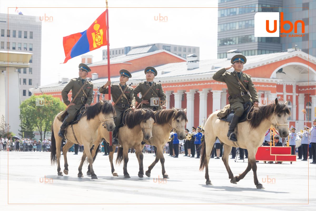 Морьт цэргүүд Хүннү гүрэн, Их Монгол Улс, Богд хаант Монгол Улс, Ардын журамт цэрэг, Ардын армийн туг болон Төрийн далбааг залан явснаар “Төрийн далбааны өдөр”-т зориулсан ёслолын жагсаал өндөрлөлөө.