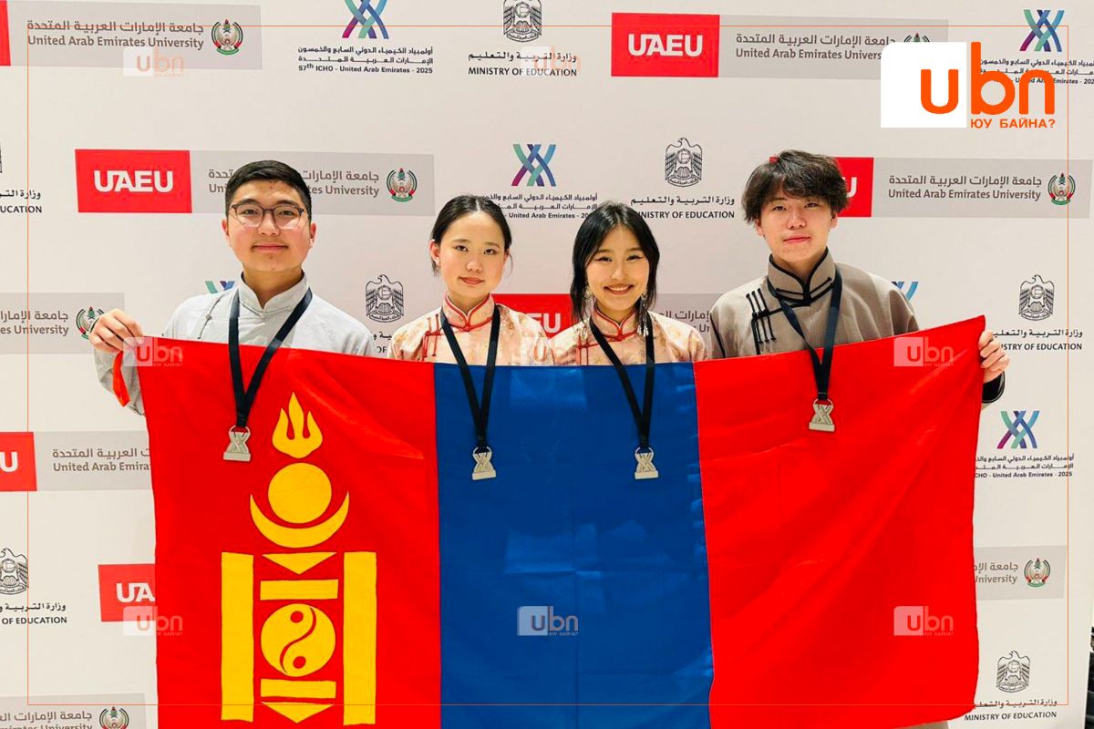 Арабын Нэгдсэн Эмират Улсын Дубай хотод зохион байгуулагдсан химийн олон улсын дугаар олимпиадаас Монгол Улсын багийн сурагчид багаараа мөнгөн медаль авсан баяртай мэдээ ирлээ.