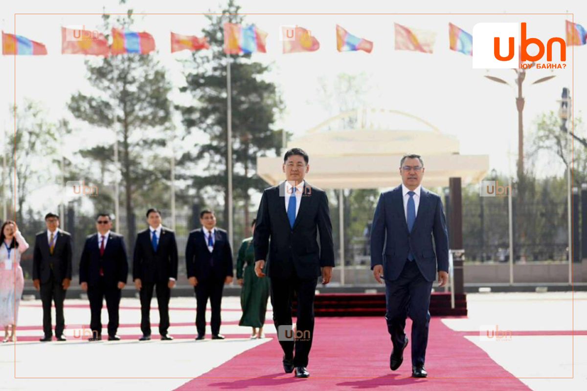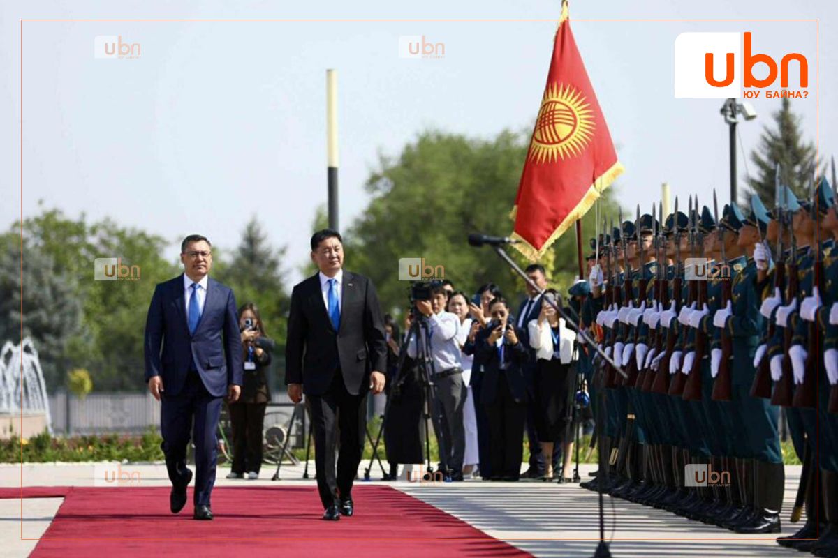 Бүгд Найрамдах Киргиз Улсад төрийн айлчлал хийж байгаа Монгол Улсын Ерөнхийлөгч Ухнаагийн Хүрэлсүхийг Ерөнхийлөгч Садыр Жапаров “Ынтымак Ордо” төрийн ордонд албан ёсоор угтан авлаа.