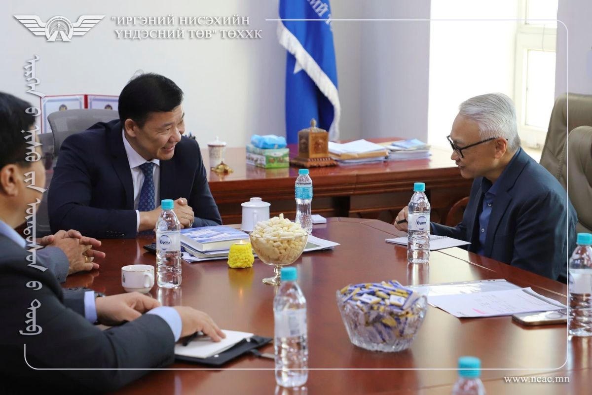 Монгол Улсад нисэх хүчин үүсэж хөгжсөний түүхт 100 жилийн ойн хүрээнд зохион байгуулагдсан Олон улсын эрдэм шинжилгээний хуралд илтгэл тавих болон баярын үйл ажиллагаанд оролцохоор “Иргэний нисэхийн үндэсний төв” ТӨХХК-ийн гүйцэтгэх захирал Б.Отгонсүхийн урилгаар манай улсад зочилж буй Иргэний нисэхийн агаарын навигацийн үйлчилгээний байгууллага (CANSO)-ын Ази номхон далайн бүсийн төвийн дарга Со Потинтой өнөөдөр буюу 2025 оны 05 дугаар сарын 26-ны өдөр тус байгууллагын удирдлагын төлөөлөл уулзалт хийлээ.