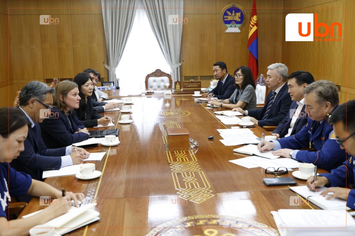 Монгол Улсын Шадар сайд С.Амарсайхан Азийн хөгжлийн банкны (АХБ) Монгол Улс дахь Суурин төлөөлөгч хатагтай Шэннон Коулингийг хүлээн авч уулзаж, хоёр талын хамтын ажиллагааны өнөөгийн байдал, хэрэгжиж байгаа төсөл хөтөлбөрийн явц, үр дүн болон цаашдын хамтын ажиллагааны чиглэл, төлөвлөж байгаа арга хэмжээний талаар санал солилцлоо.