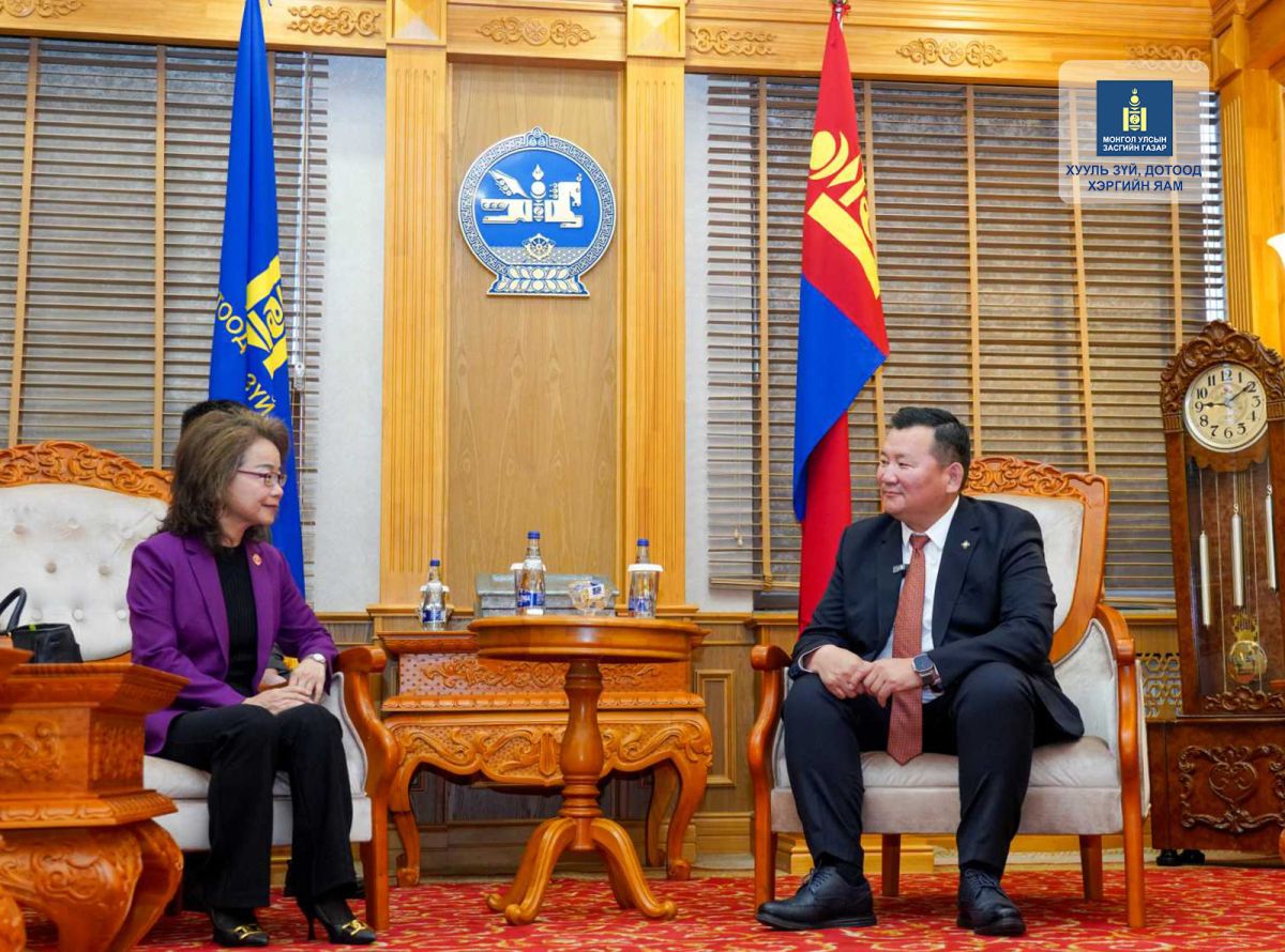 Уулзалтын эхэнд хатагтай Элчид сайд Хууль зүй, дотоод хэргийн сайд Л.Мөнхбаатарт хандан шинээр томилогдсон албанд нь баяр хүргэж, амжилт хүслээ.