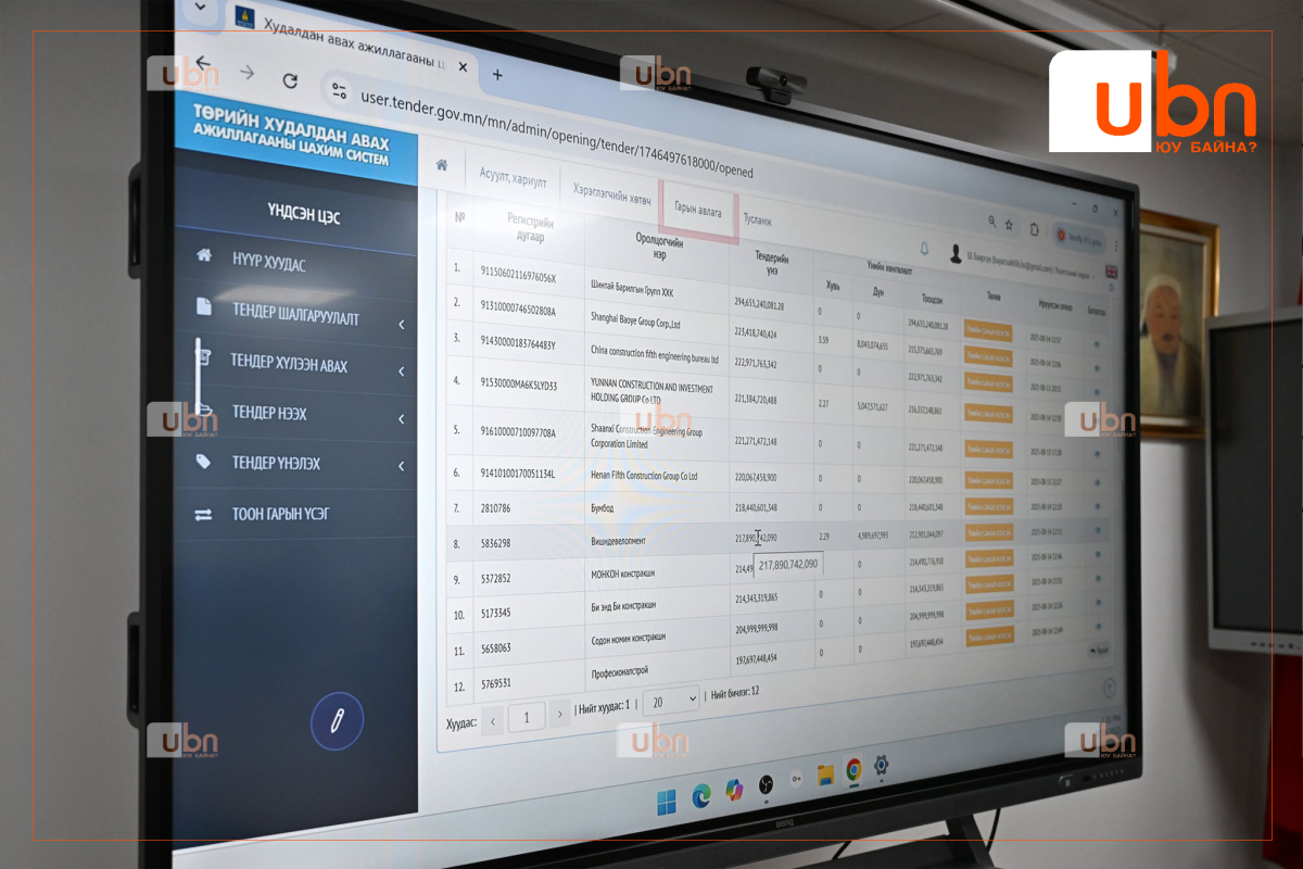 - “Професионалстрой” ХХК зэрэг аж ахуйн нэгжүүд тус тус тендерт үнийн саналаа ирүүлжээ.