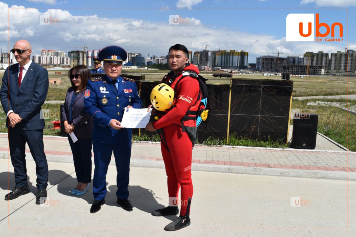 ОБЕГ-ын харьяа Агаараас эрэн хайх, аврах 111 дүгээр анги БНФУ-аас Зүүн ази бүсийн Иргэний хамгаалалтын асуудал хариуцсан төлөөлөгч, хошууч Кристофф Бауманн нар “Урсгал болон тогтмол усны мандлаас эрэн хайх, аврах ажиллагаа”-ны дадлага, сургалтыг зохион байгуулж, сургалтад хамрагдсан алба хаагчдад гэрчилгээ гардууллаа.