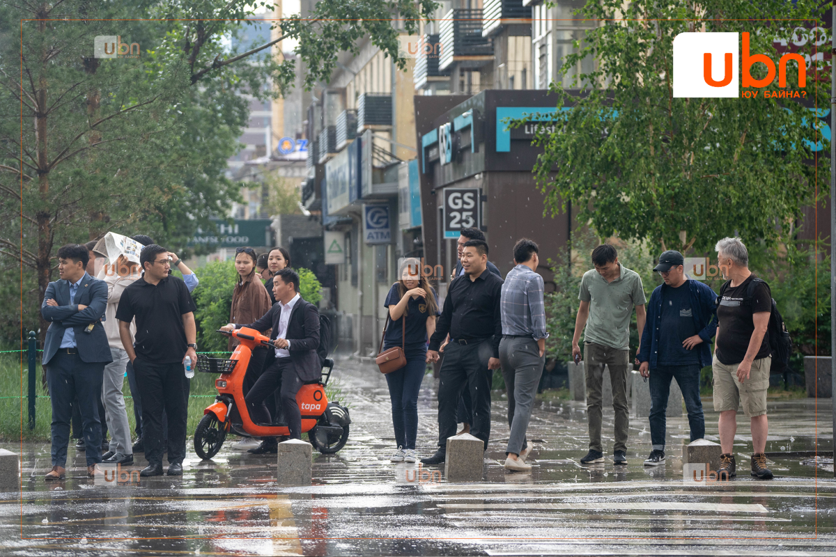 Нэг буланд оюутнууд бололтой залуус инээлдэн алхаж, шалбааг туучихдаа ус цалгиулан хөгжилдөж байхад, яг хажууханд нь хүмүүсийн нэгэн хэсэг бухимдаж, шүхрээ хүчтэй сэгсрэн, усанд норсон гутлаа харан дургүйцнэ. Өөр өөрийн мэдрэмжээр бороотой өглөөг угтаж байгаа хүмүүсийн тэр дүр зураг хотын амьдрал ямар олон өнгөтэйг илтгэх шиг.