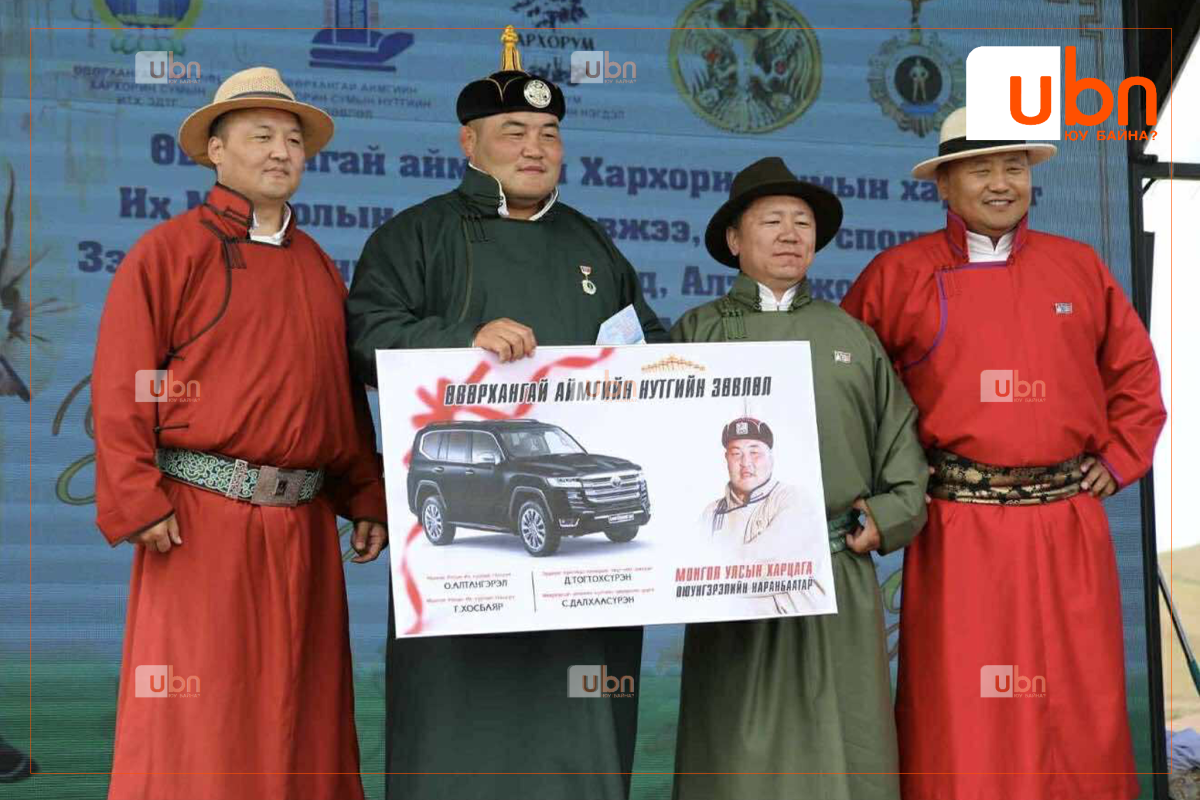 Тулгар төрийн 2234 жил, Их Монгол Улсын 819 жил, Ардын хувьсгалын 104 жил, Ардчилсан хувьсгалын 35 жилийн ойн Үндэсний их баяр наадмаар зургаа давж, шинээр Улсын харцага цол хүртсэн О.Наранбаатарын цолны мялаалга наадам Өвөрхангай аймгийн Хархорин суманд боллоо.