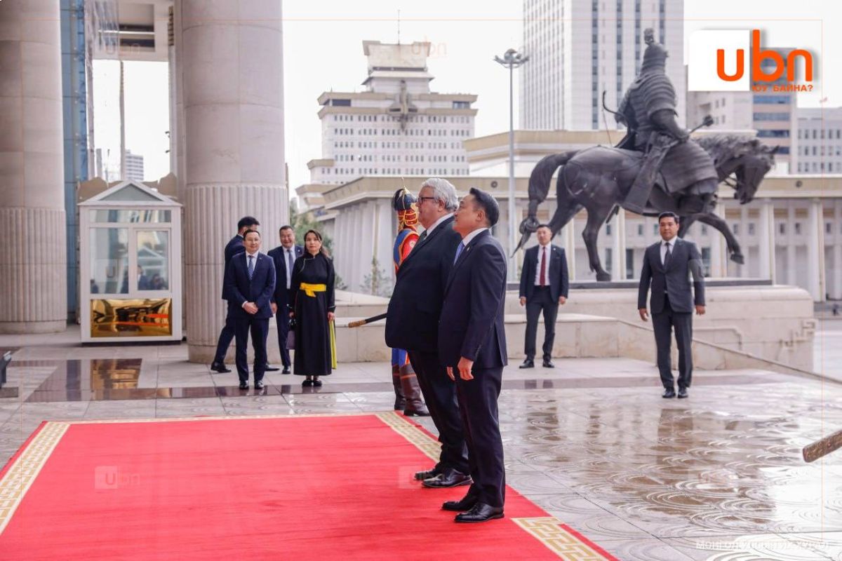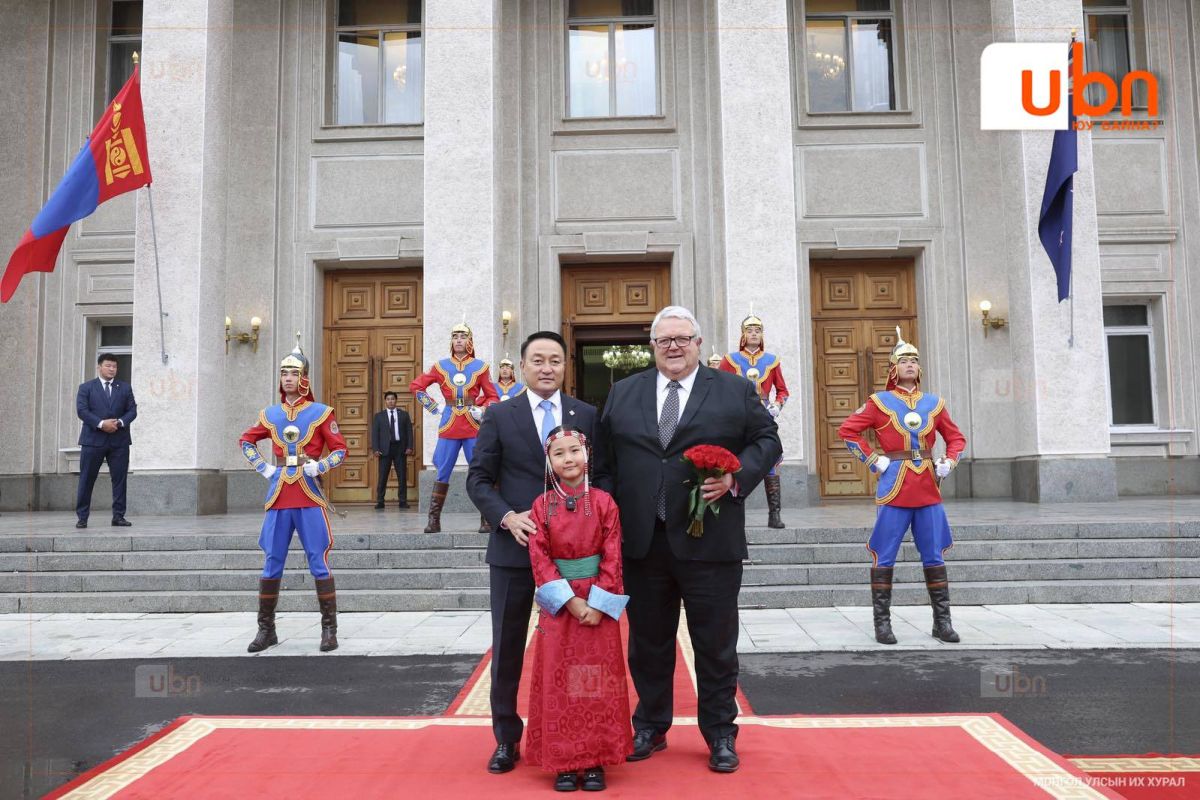 Монгол Улсын Их Хурлын даргын урилгаар манай улсад албан ёсны айлчлал хийж буй Шинэ Зеланд Улсын Парламентын Төлөөлөгчдийн танхимын дарга Жерард Браунли-г УИХ-ын дарга Д.Амарбаясгалан өнөөдөр (2025.09.02) Төрийн ордонд албан ёсоор угтан авч мэндчиллээ.