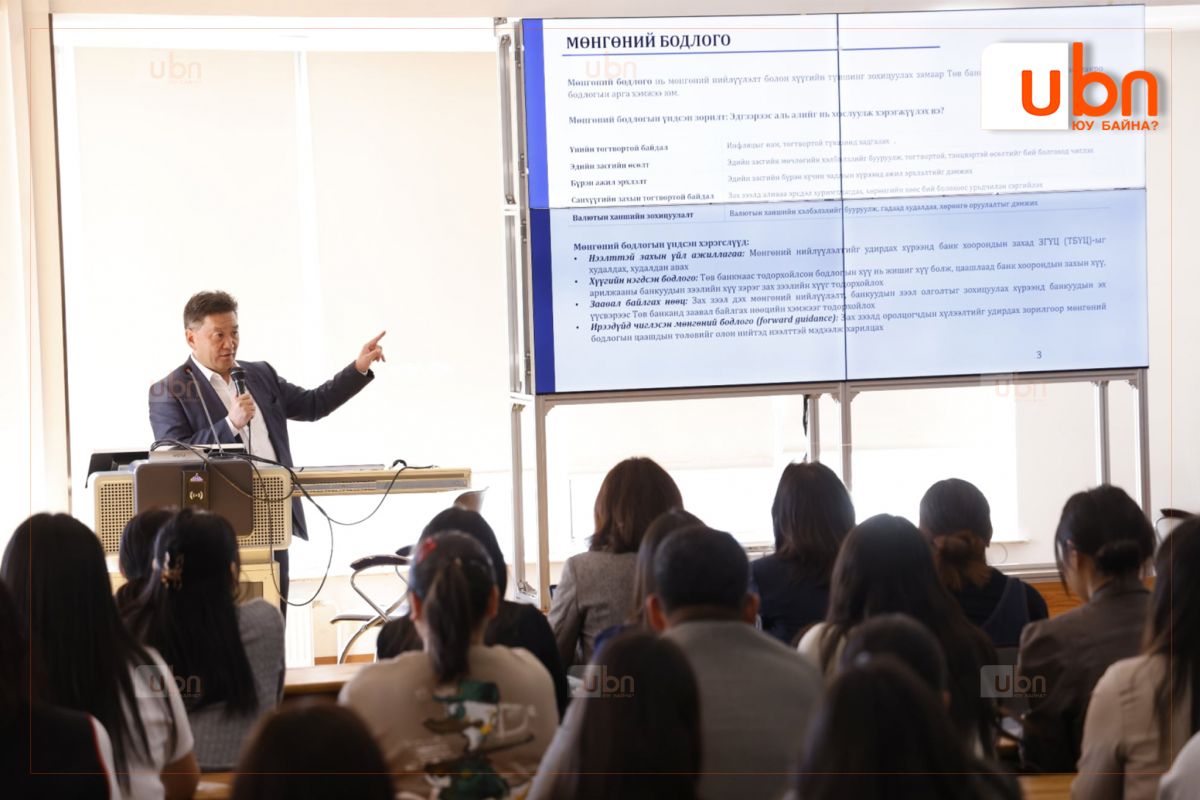 Энэ үеэр Монголбанкны Ерөнхийлөгч Б.Лхагвасүрэн эдийн засгийн төлөв байдал, түүнд мөнгөний бодлогын үзүүлэх нөлөөлөл, онцлог байдал болон Төрөөс мөнгөний бодлогын талаар 2026 онд баримтлах үндсэн чиглэлийн төсөлд тусгагдсан заалтууд, зорилтын талаар дэлгэрэнгүй мэдээлэл өгч, оюутнуудын сонирхсон асуултад хариуллаа.