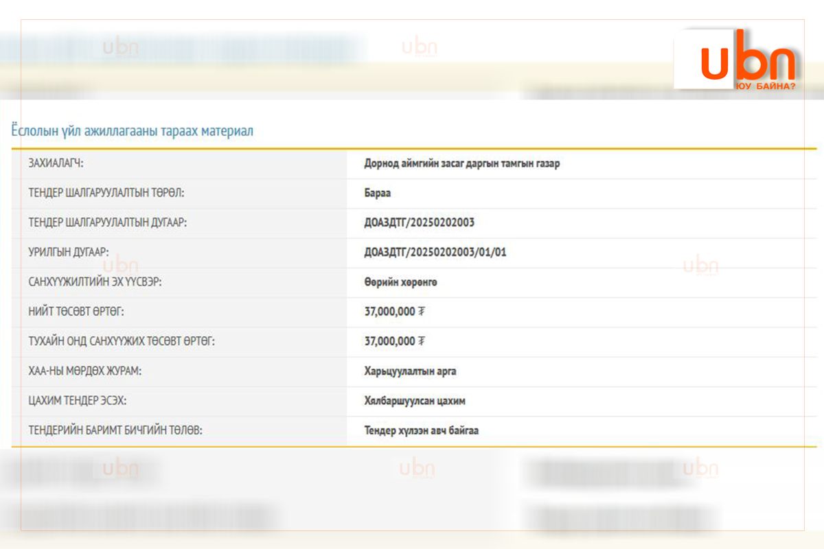 Хоёрдугаарт, 37 сая төгрөгөөр тараах материал худалдан авахаар тендер зарласан байна. Тодруулбал, үүнд хоёр төрлийн багц байгаа бөгөөд эхний багцад 1000 ширхэг тараах материалын уут, бал багтсан байх бол хоёрдугаар багцад 1000 ширхэг тэмдэглэлийн дэвтэр багтжээ.