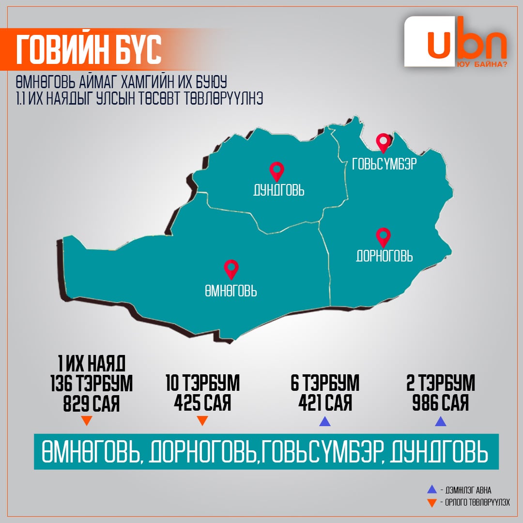 -ГОВИЙН БҮС: Өмнөговь аймаг хамгийн их буюу 1.1 их наядыг улсын төсөвт төвлөрүүлнэ-