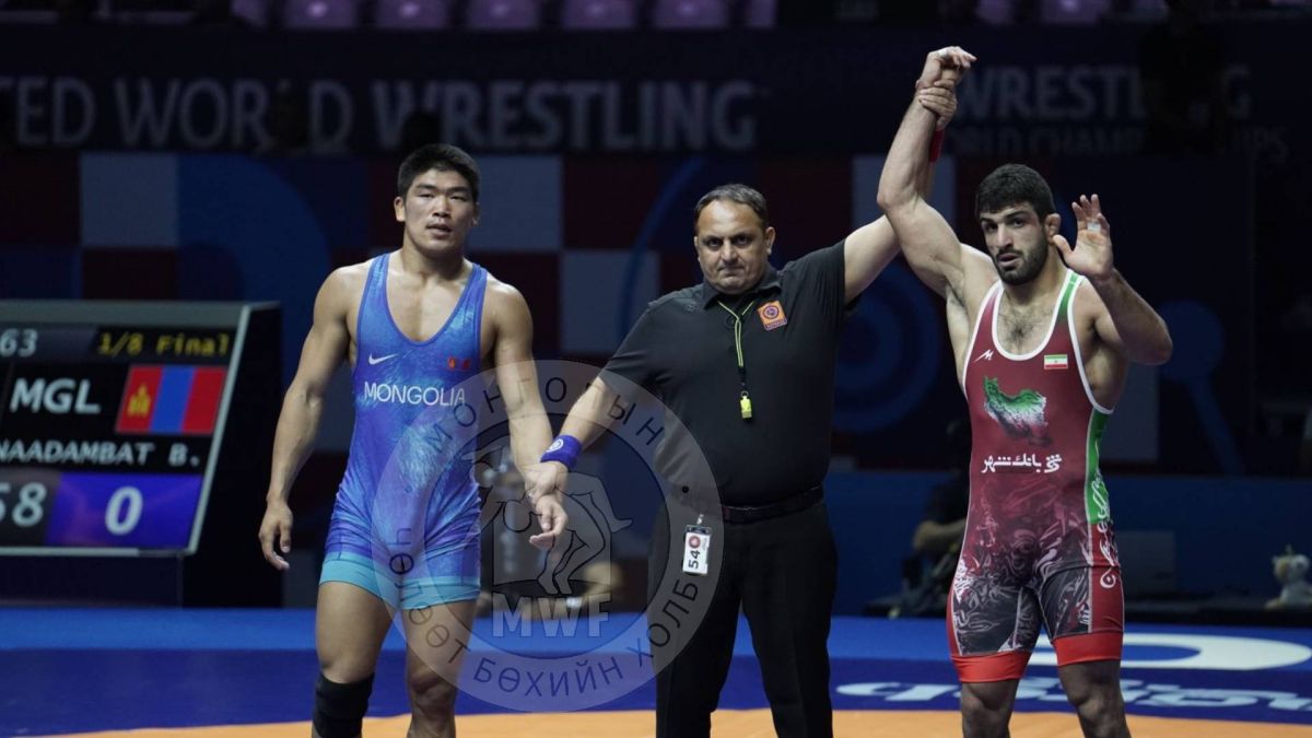 Тэрбээр шигшээ 16-д Ираны бөх, дэлхийн хошой аварга Камран Гасемпоурт 10:0 оноогоор уналаа. Хэрэв Гасемпоур финалдвал Н.Батбилгүүн дагаж барилдана.