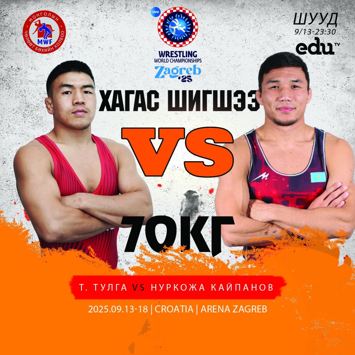 Тэрбээр 23.30 цагаас Казахстаны бөх, ДАШТ-ий алт, мөнгөн медальт, Азийн гурван удаагийн аварга Нуркожа Кайпановтай мөнгөн медалийн төлөө хүч сорино.