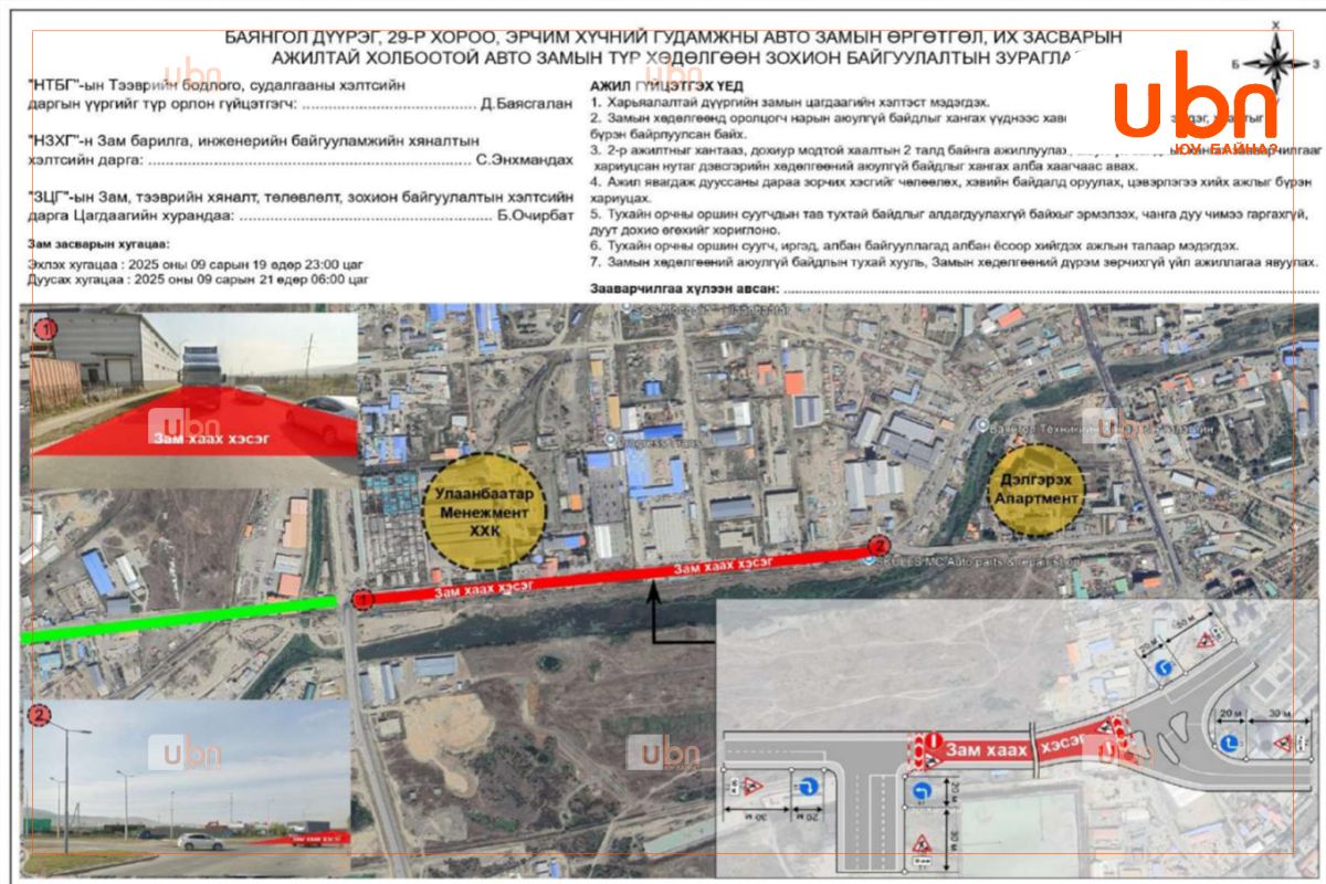 Иймд иргэд, жолооч та бүхэн дээрх хугацаанд бусад гудамж замыг сонгож замын хөдөлгөөнд оролцоно уу.