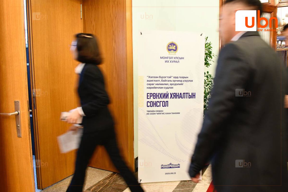 Ерөнхий хяналтын сонсгол өнөөдөр /2025.09.23/ Төрийн ордны “Их Эзэн Чингис хаан” танхимд 09 цагт эхэлнэ. Ерөнхий хяналтын сонсголыг Улсын Их Хурлын гишүүн Б.Баярбаатар даргалах бөгөөд “Халзан бүрэгтэй” орд газрын асуудлаарх холбогдох төрийн байгууллага болон шинжээчийн дүгнэлт, мэдээлэлтэй танилцаж, оролцогчид үг хэлнэ хэмээн Улсын Их Хурлын Хэвлэл мэдээллийн газраас мэдээлэв.