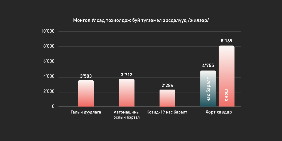 Харин дэлхий нийтийг цочроон 2 жил гаруй үргэлжилсэн КОВИД-19 цар тахал хавдраас хоёр дахин цөөн буюу 2,000 орчим хүний алтан амийг авчээ.