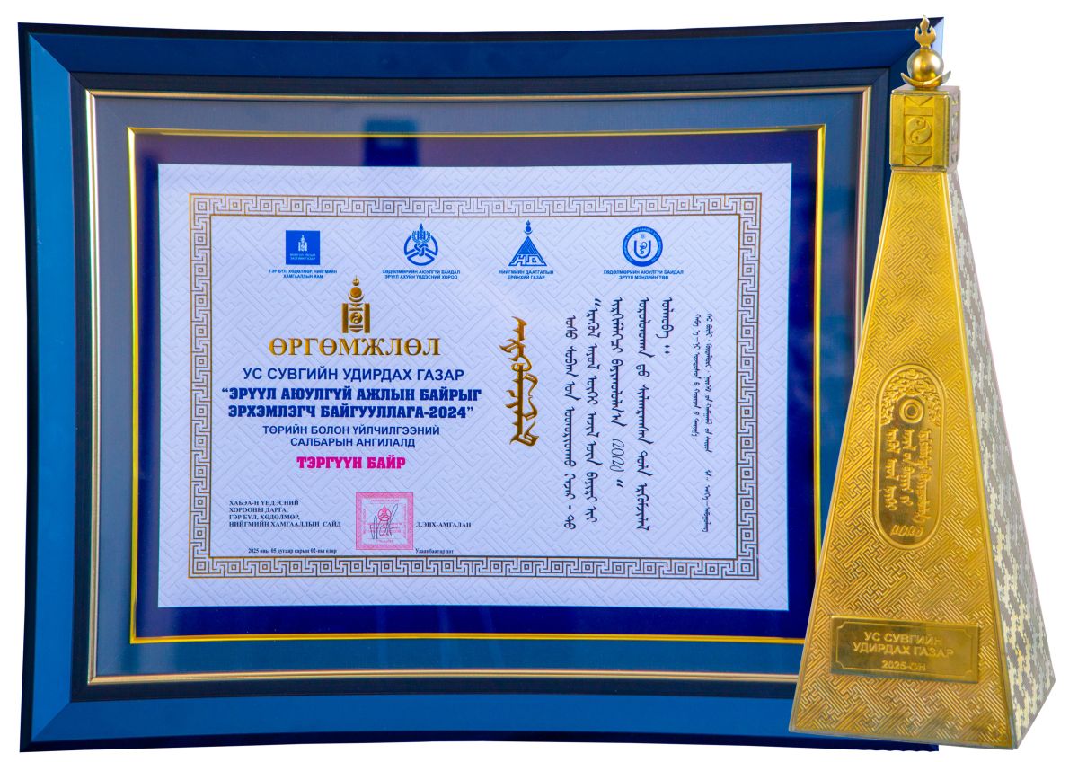 Монгол улсын ерөнхийлөгчийн ивээл дор зохион байгуулагдаж буй “Хөдөлмөрийн аюулгүй байдал, эрүүл мэндийн үндэсний III чуулган”-ы үйл ажиллагаан дээр “Эрүүл аюулгүй ажлын байрыг эрхэмлэгч байгууллага-2024” уралдааны Төрийн үйлчилгээний салбарын 100-аас дээш ажилтантай байгууллагын төрөлд ТЭРГҮҮН байр эзэллээ. Байгууллагын нийт хамт олондоо халуун баяр хүргэе. Аюулгүй байдал аз биш сонголт гэдгийг санацгаая.