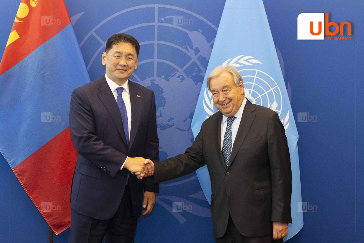 Монгол Улсын Ерөнхийлөгч У.Хүрэлсүх 2025 оны 09 дүгээр сарын 23-ны өдөр НҮБ-ын Ерөнхий нарийн бичгийн дарга Антонио Гутеррештэй НҮБ-ын Төв байранд уулзав.