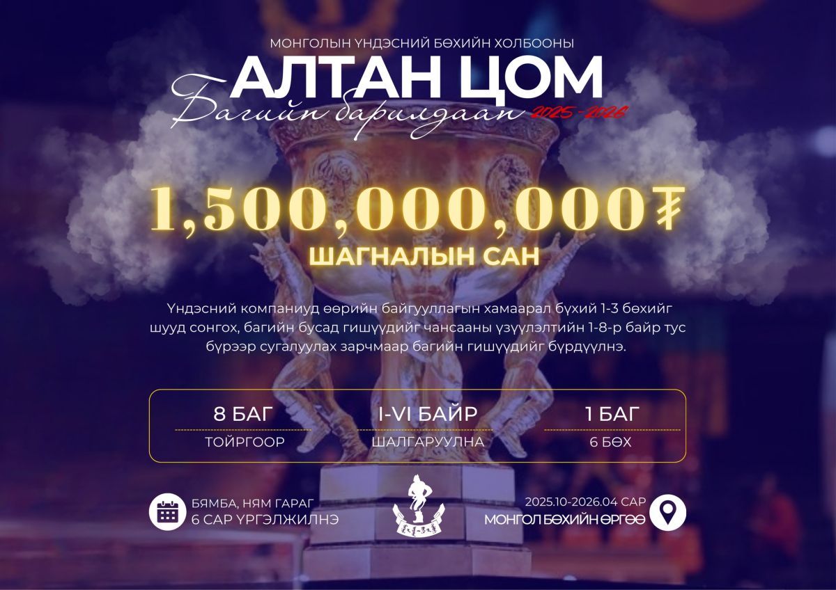 “Алтан Цом”-ын 2022, 2023 оны барилдааны шагналын сан 650,000,000 төгрөг байсан бол энэ жилийн барилдааны ШАГНАЛЫН САН 1,500,000,000 ТӨГРӨГ байхаар шийдвэрлэсэн байна.