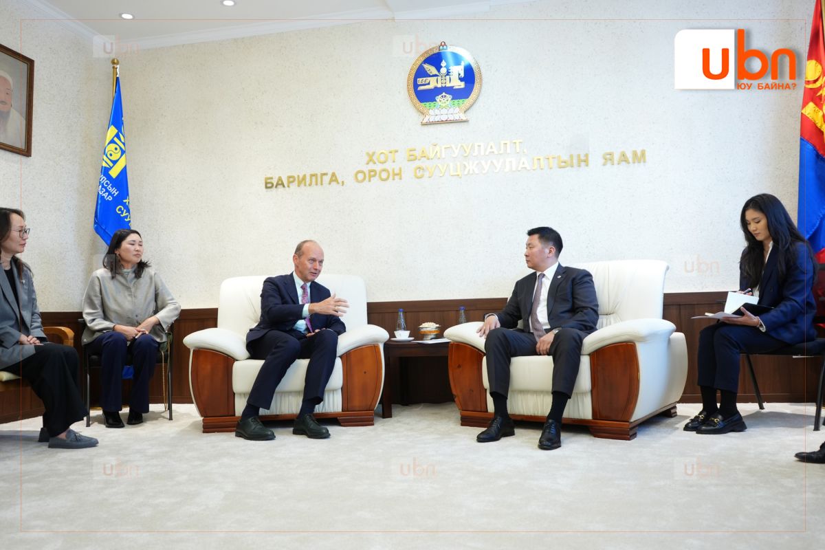 Хот байгуулалт, барилга, орон сууцжуулалтын сайд Э.Бат-Амгалан Дэлхийн ногоон барилгын зөвлөлийн (World Green Building Council) Европ, Төв Азийн бүсийг хариуцсан дэд ерөнхийлөгч Ричард Тейхманныг хүлээн авч уулзлаа.