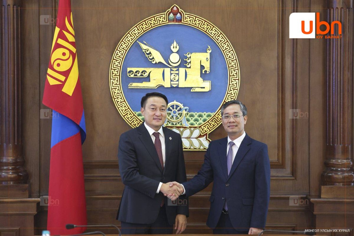 Монгол Улсын Их Хурлын дарга Д.Амарбаясгалан өнөөдөр (2025.09.30) Бүгд Найрамдах Социалист Вьетнам Улсаас Монгол Улсад суугаа Онц бөгөөд Бүрэн эрхт Элчин сайд Нгуен Дуан Тань-ыг хүлээн авч уулзлаа.