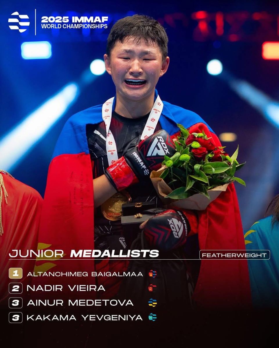 Улсын 2 удаагийн аварга, 2024 оны Залуучуудын ДАШТ-ий хүрэл медальт, Ази тивийн аваргын хүрэл медальт Б.Алтанчимэг ийнхүү Холимог тулааны спортоор Залуучуудын Дэлхийн аварга болсон Монгол улсын анхны тамирчин болж байна.