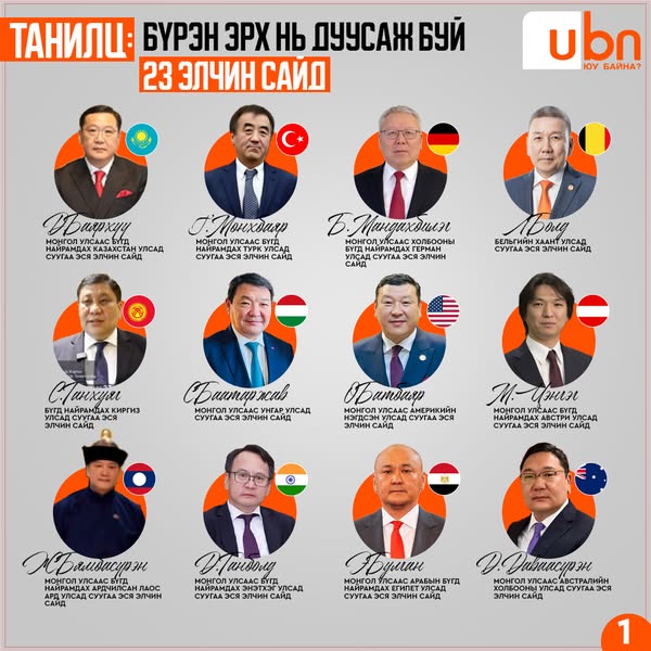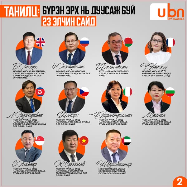 Бүрэн эрх нь дууссан 23 элчин сайдын мэдээлэлтэй доорх зургаас танилцана уу.