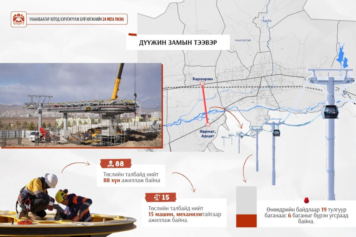 Улаанбаатар хотыг хөгжүүлэх 24 мега төслийн хүрээнд нийтийн тээврийн үйлчилгээний төрөл, хүртээмжийг нэмэгдүүлэх, авто замын түгжрэл, агаарын бохирдлыг бууруулах зорилгоор “Дүүжин замын тээвэр” төслийг хэрэгжүүлж буй. Дүүжин замын тээвэр нь 98 кабинтай, оргил цагийн үед 2320 зорчигч тээвэрлэх хүчин чадалтай байх юм. Өнөөдрийн байдлаар төслийн гүйцэтгэл 38 хувьтай байна.