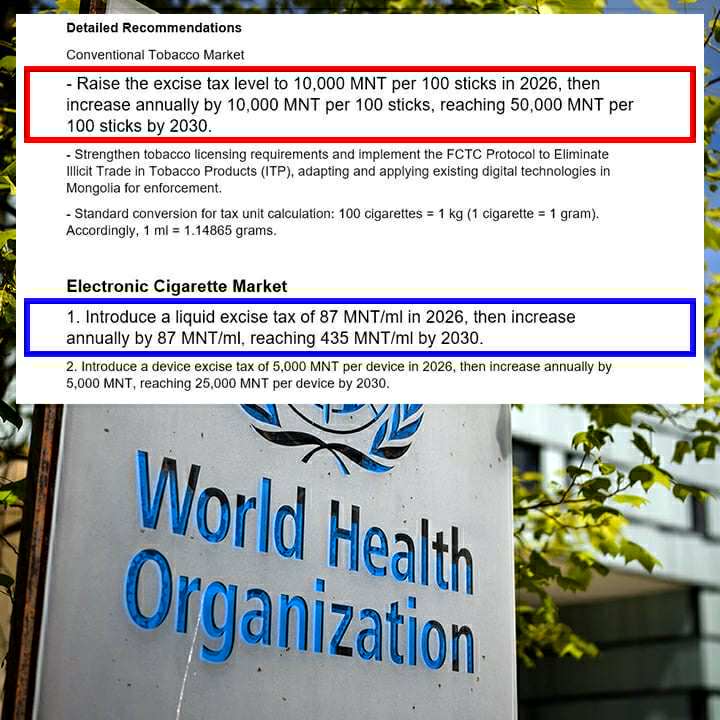 Уг уулзалтаар танилцуулагдсан янжуур тамхи болон шинэ тутам үүссэн гэх электрон тамхи зэрэгт хэрхэн татвар ногдуулах тухай бодлогын зөвлөмжид 2026 оноос эхлэн 100 ширхэг янжуур тамхи тутамд 10,000 төгрөг онцгой албан татвар ногдуулах, 1мл электрон тамхины шингэнд 87 төгрөг ногдуулах буюу 2030 он хүртэл үе шаттайгаар өгсөснөөр бүх төрлийн тамхин бүтээгдэхүүний хэрэглээг 15% хүртэл бууруулах зэрэг саналууд дурдагджээ.