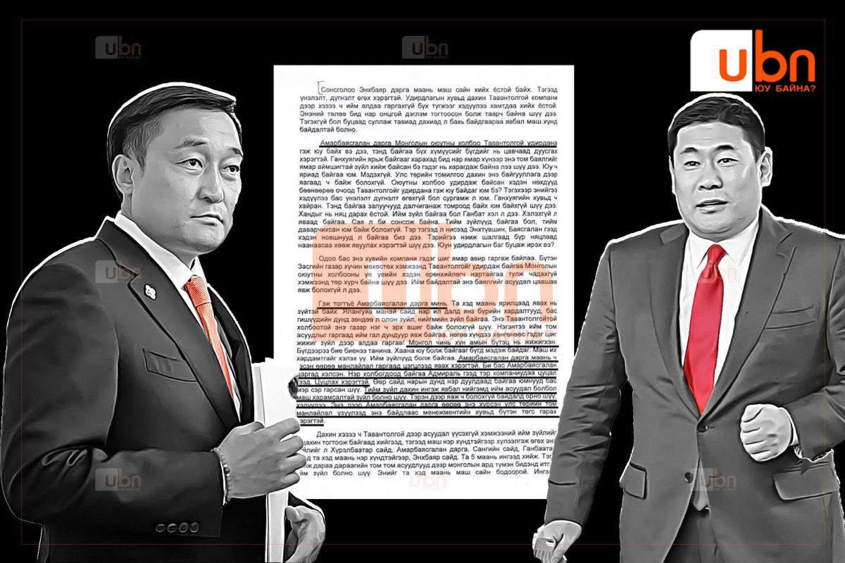 УИХ-ын гишүүн Б.Энхбаяр өчигдөр сэтгүүлчдэд мэдээлэл өгсөн. Энэ үеэрээ "Ерөнхий сайд Л.Оюун-Эрдэнэ 2023 оны 11 сарын 1-ний өдрийн Засгийн газрын хуралдаанд Д.Амарбаясгаланд хандаж "Амарбаясгалаан, чи одоо өөрөө боль. Монгол жижигхэн. Наад "Админерал"-тай холбоотой асуудлаа өөрөө шийд. Шийдэхгүй бол өөрөө асуудалтай шүү" гэдэг асуудлыг ярьж байсан" гэх мэдээллийг өгсөн.