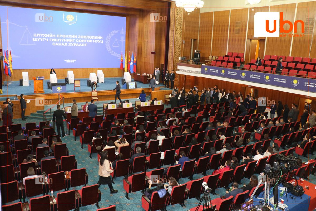 Шүүхийн ерөнхий зөвлөлийн шүүгч гишүүнийг сонгох санал хураалтад нийт 479 шүүгч саналаа өгч, Тооллогын комиссын дүн гарахад Улсын дээд шүүхийн шүүгч П.Золзаяа, Нийслэлийн Иргэний хэргийн давж заалдах шатны шүүхийн Ерөнхий шүүгч Г.Даваадорж, Төв аймгийн Эрүү, Иргэний хэргийн давж заалдах шатны шүүхийн Ерөнхий шүүгч М.Мөнхдаваа, Баянгол, Хан-Уул, Сонгинохайрхан дүүргийн Эрүүгийн хэргийн анхан шатны тойргийн шүүхийн шүүгч О.Жанчивнямбуу нар олонхын санал авчээ. Анхан шатны шүүхээс Шүүхийн ерөнхий зөвлөлийн шүүгч гишүүнд нэр дэвшигч Н.Одонтуул, Л.Өлзийжаргал нарын дунд дахин санал хураалт явуулахаар боллоо.