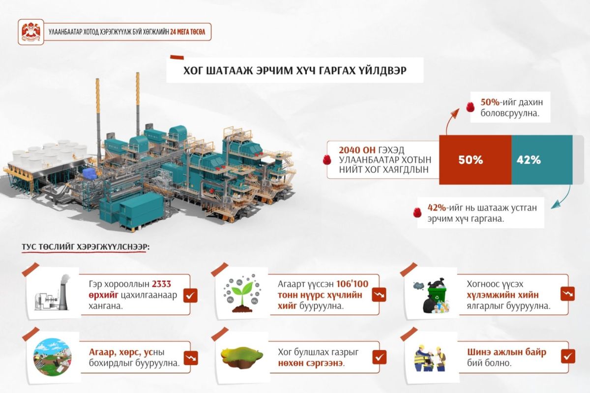 Нийслэлийн хэмжээнд гурван төвлөрсөн хогийн цэгт нийлүүлж буй нийт хог хаягдлын 11.4 хувийг дахин боловсруулж, 88.6 хувийг булж устгаж байна. Хогийг булж устгах арга нь метан хийг ихээр ялгаруулдаг, байгаль орчинд сөрөг нөлөө ихтэй. Тиймээс хогийг булж устгахгүйгээр шатаах аргаар эрчим хүч гаргаж авах дэвшилтэт технологи бүхий “Хог шатааж эрчим хүч гаргах үйлдвэр”-ийг Хан-Уул дүүргийн 12 дугаар хороо, Морингийн давааны хогийн цэгийг түшиглэн 10 га газарт ирэх онд барьж эхэлнэ. Тус үйлдвэр нь хоногт 1500 тонн хог шатааж, 35 МВт цахилгаан эрчим хүч үйлдвэрлэж өөрийн болон хогны үйлдвэр технологийн паркийн хэрэгцээг хангах хүчин чадалтай. 2022 онд батлагдсан Төр, хувийн хэвшлийн түншлэлийн тухай хуульд заасан шаардлагуудыг хангаж, Монгол Улсын хэмжээнд анх удаа тус хуулийн дагуу хэрэгжих бүтээн байгуулалтын төслүүдийн нэг болж буй онцлогтой.