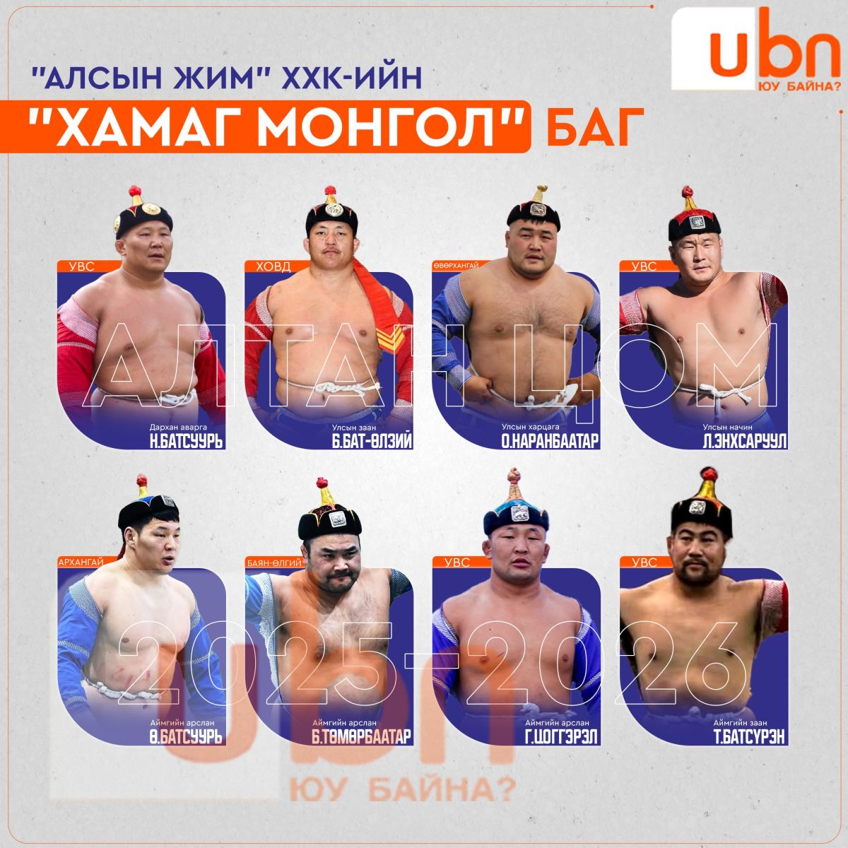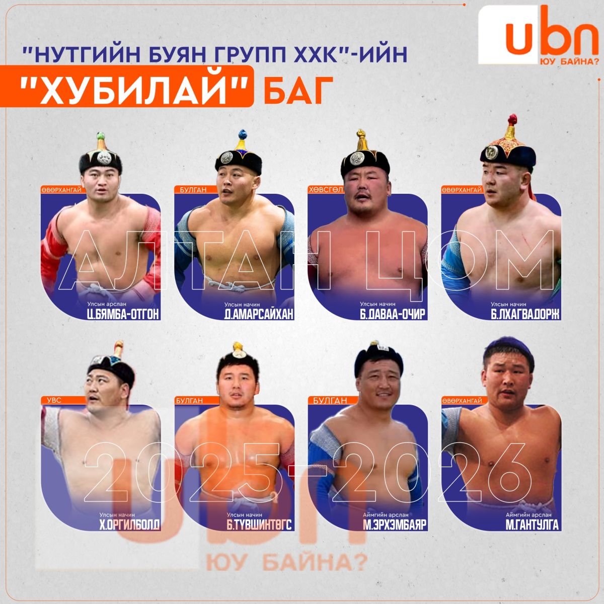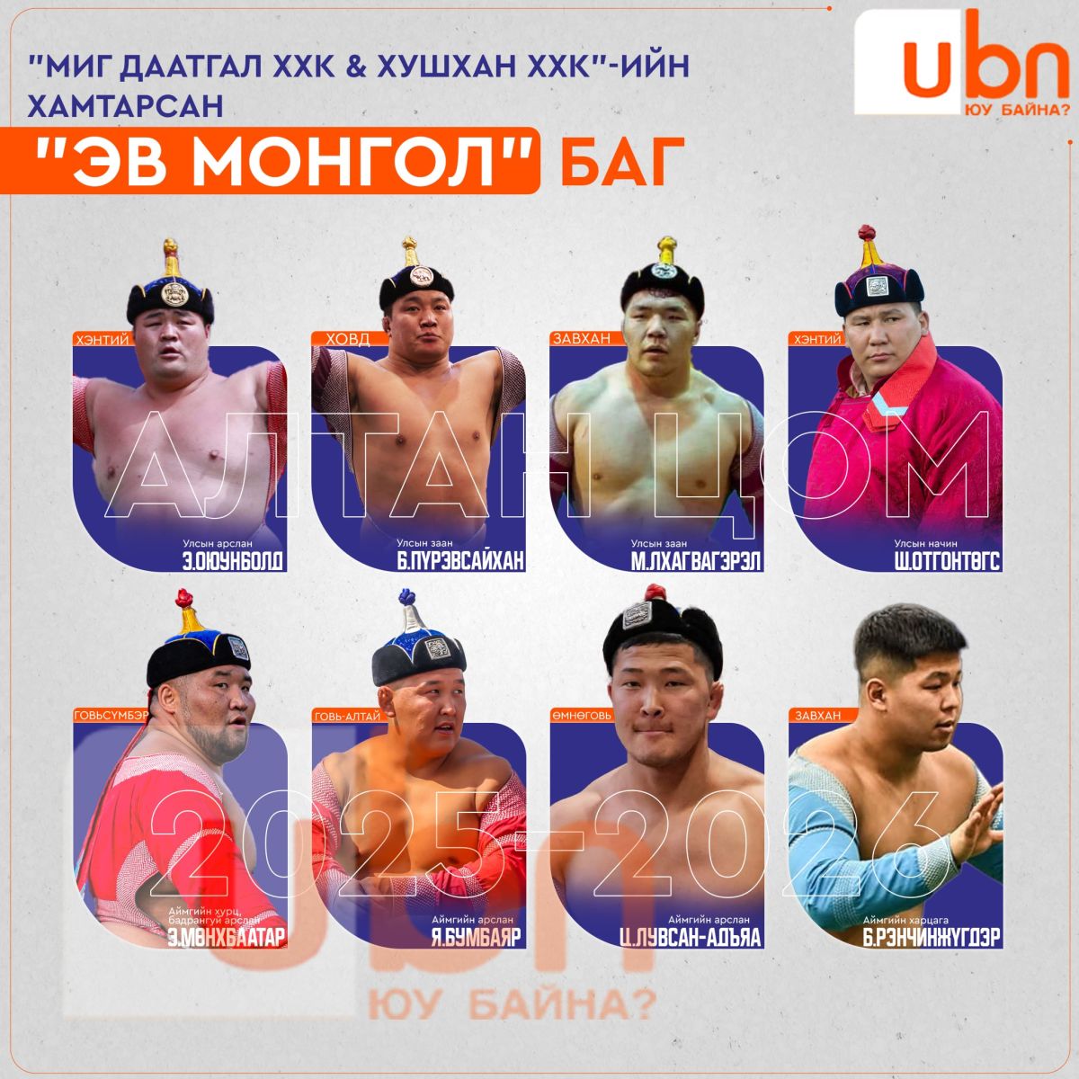 Энэ удаагийн "АЛТАН ЦОМ"-ын барилдаанд ХҮЧ ҮЗЭХ 8 багийн БҮРЭЛДЭХҮҮНИЙГ ТАНИЛЦУУЛЖ БАЙНА.