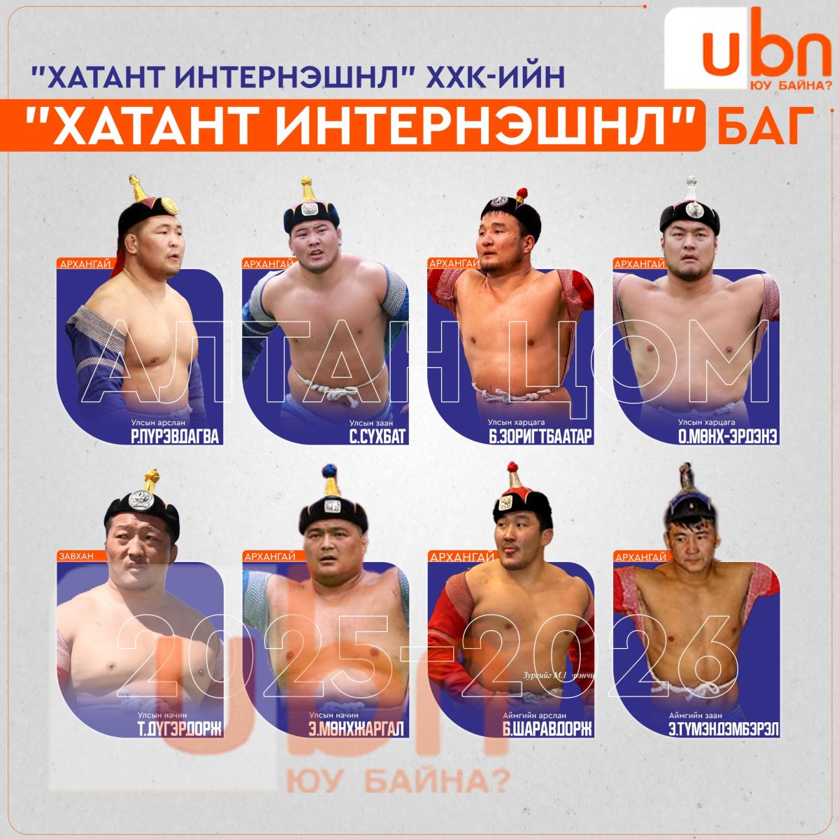 "Хатант интернейшнл" ХХК-ийнхан багтаа сонголтоор Улсын заан С.Сүхбат, Улсын харцага Б.Зоригтбаатар, Улсын начин Э.Мөнхжаргалыг сонгосон бол сугалаагаар Улсын арслан Р.Пүрэвдагва, Улсын харцага О.Мөнх-Эрдэнийг багтаа нэгтгэж 2022-2023 онд Алтан цомд түрүүлж, 2023-2024 онд хоёрдугаар байрт орсон Архангай аймгийн үндсэн бүрэлдэхүүнийг ахин нэгтгэж, чаджээ.
