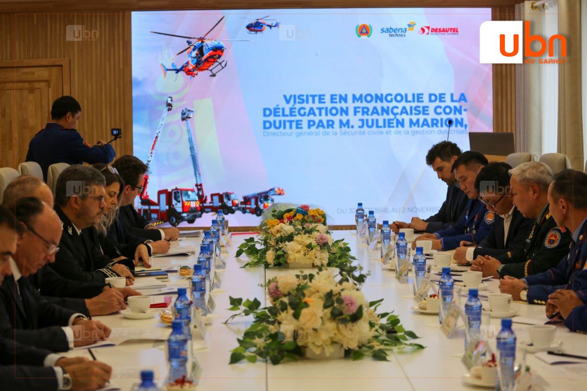 БНФУ-ын Иргэний аюулгүй байдал, хямралын удирдлагын ерөнхий газрын дарга, ноён Жулиен Марион тэргүүтэй төлөөлөгчид Онцгой байдлын байгууллагын үйл ажиллагаатай танилцаж, хоёр улсын Засгийн газар хоорондын санхүүгийн хэлэлцээрийн хүрээнд хамтран хэрэгжүүлж байгаа төслүүдэд үнэлэлт өгч ажиллана.