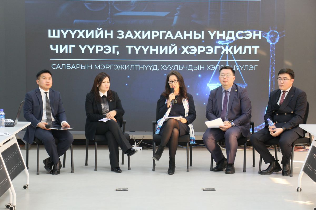 Шүүхийн ерөнхий зөвлөлийн шүүгч бус гишүүдийн сонгон шалгаруулалт, томилгооны үйл явц өрнөж буй энэ үед шийдвэр гаргагчид болон салбарын оролцогчдод мэдээлэл өгөх, тулгамдаж буй асуудлыг хэлэлцэх зорилготой “Шүүхийн захиргааны үндсэн чиг үүрэг, түүний хэрэгжилт” сэдэвт хэлэлцүүлэг өнөөдөр (2025.11.12) боллоо.