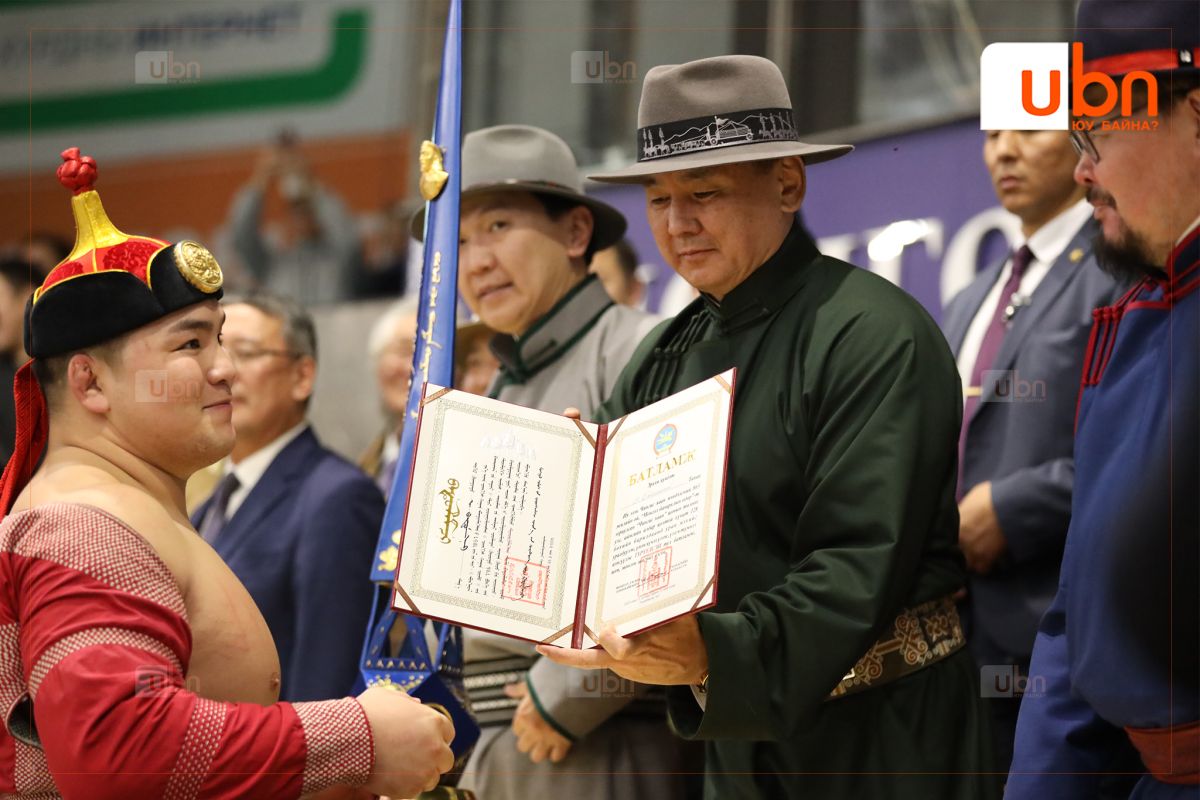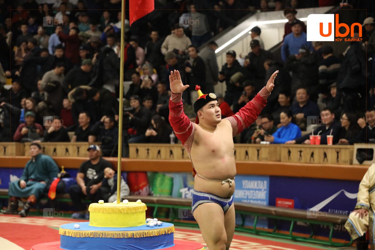 Уг барилдаан Улсын арслан Э.Батмагнай түрүүлж, "ЧИНГИС ХААН ЦОМ"-ын эзэн боллоо. Улсын заан С.Сүхбат үзүүрлэлээ. Ингэснээр Улсын заан С.Сүхбат нь хоёр жил дараалан үзүүрлэж буй юм.