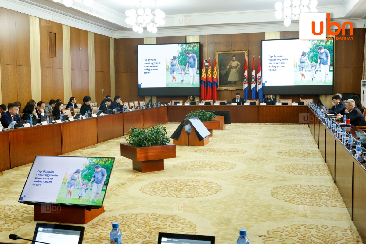 Монгол Улсад хувийн эрх зүйн асуудлыг зохицуулдаг суурь хуулийн нэг нь Гэр бүлийн тухай хууль юм. Өнөөдрийн байдлаар 1999 онд батлагдсан 9 бүлэг, 76 зүйлтэй Гэр бүлийн тухай хууль хүчин төгөлдөр үйлчилж байна. Нийгмийн харилцаа өөрчлөгдөж, хүүхэд хамгаалал, гэр бүлийн маргааныг шийдэхэд олон улсын нийтлэг сайн туршлага, заншлын хэм хэмжээнд нийцүүлэн Гэр бүлийн тухай хуулийг шинэчлэн боловсруулсан хэмээн ажлын хэсэг танилцууллаа. Гэр бүлийн тухай 11 бүлэг, 88 зүйлтэй шинэчилсэн найруулгын төсөлд