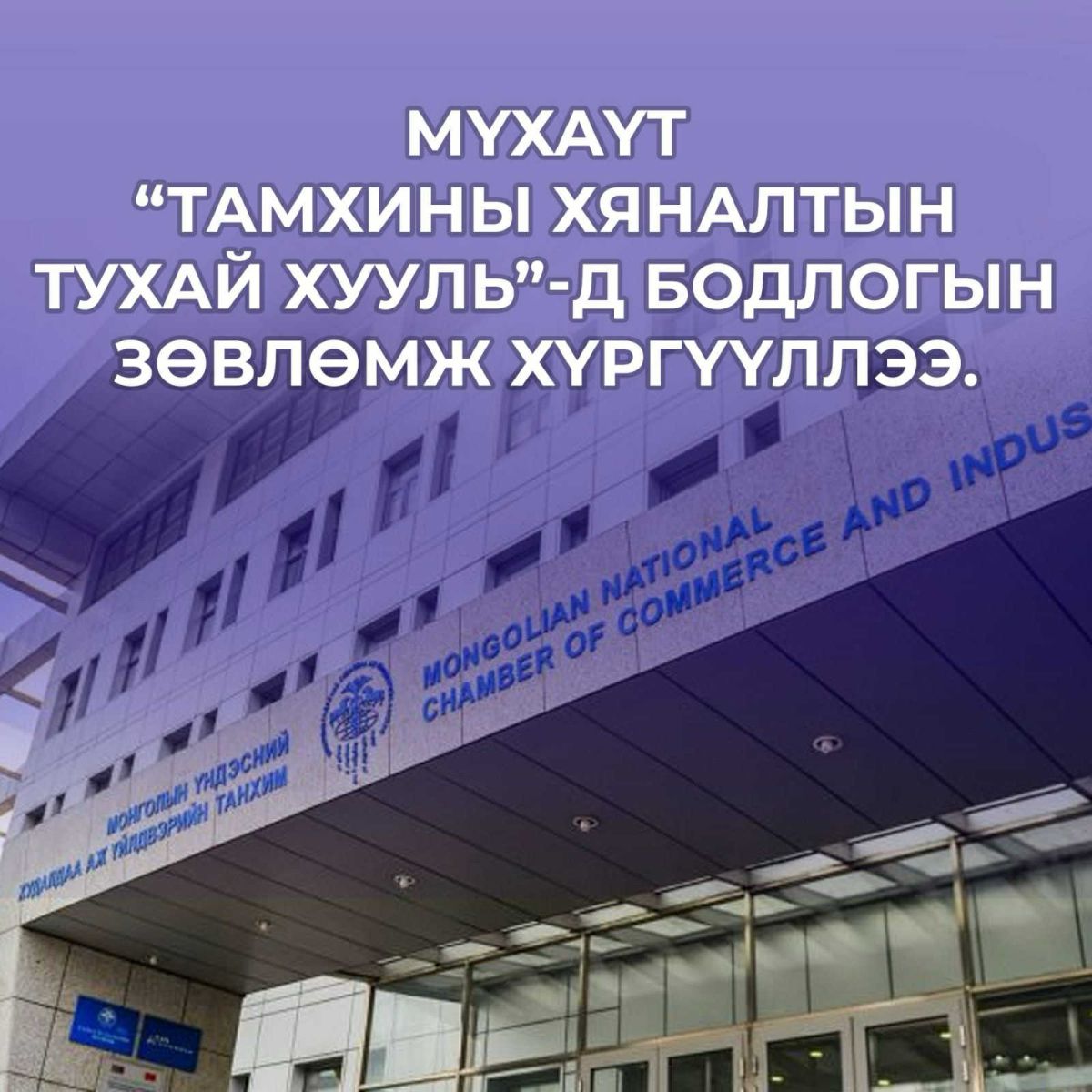 Монголын Үндэсний Худалдаа Аж Үйлдвэрийн Танхим (МҮХАҮТ) Тамхины хяналтын тухай хуульд нэмэлт, өөрчлөлт оруулах төсөлтэй холбоотойгоор бизнесийн салбарын оролцоо, олон талын саналыг нэгтгэн хууль тогтоогчдод хүргүүллээ. Энэхүү санал нь хуулийн зорилтыг дэмжихийн зэрэгцээ бодит эдийн засгийн нөхцөлд нийцсэн, тогтвортой, хэрэгжих боломжтой зохицуулалт бүрдэхэд чухал хувь нэмэр оруулах зорилготой гэжээ.