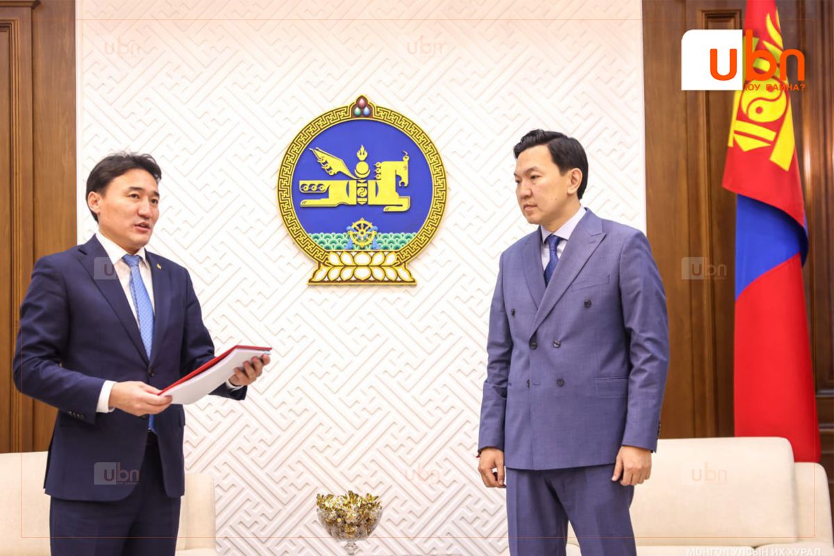 Монгол Улсын Их Хурлын дарга Н.Учралд өнөөдөр (2025.11.25) Улсын Их Хурлын гишүүн, Аж үйлдвэр, эрдэс баялгийн сайд Г.Дамдинням нар Стратегийн ач холбогдол бүхий бүтээгдэхүүний хангамж, нийлүүлэлтийг дэмжих тухай хуулийн төслийг өргөн мэдүүлэв.