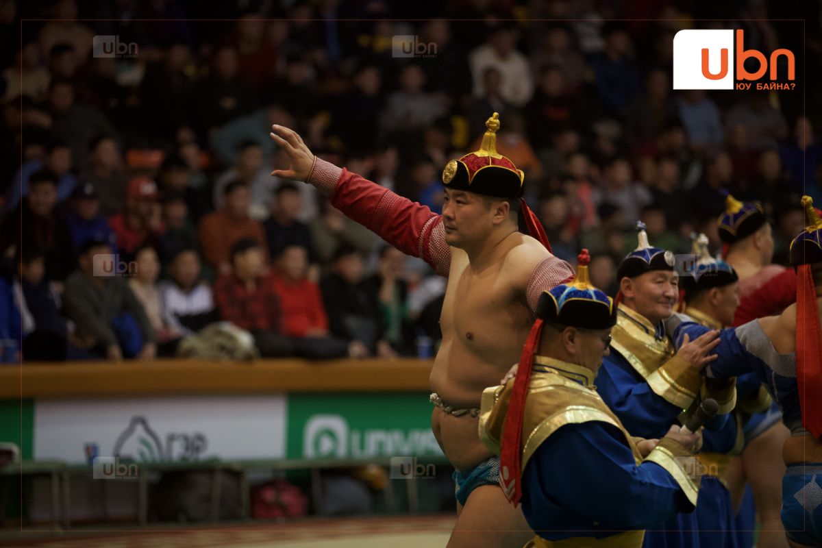 Бүгд найрамдах улсаа тунхаглаж, анхдугаар үндсэн хуулиа баталсны 101 жилийн ойд зориулсан барилдаан Монгол бөхийн өргөөнд эхэллээ. Бөхийн барилдааны нэгийн даваанд том цолтой бөхчүүдээс Улсын аварга П.Бүрэнтөгс сумын заан М.Мандахбаяраар, Улсын аварга О.Хангай сумын заан З.Анхбаяраар, Улсын арслан Э.Оюунболд сумын заан А.Мягмарсүрэнгээс тус тус давлаа.
